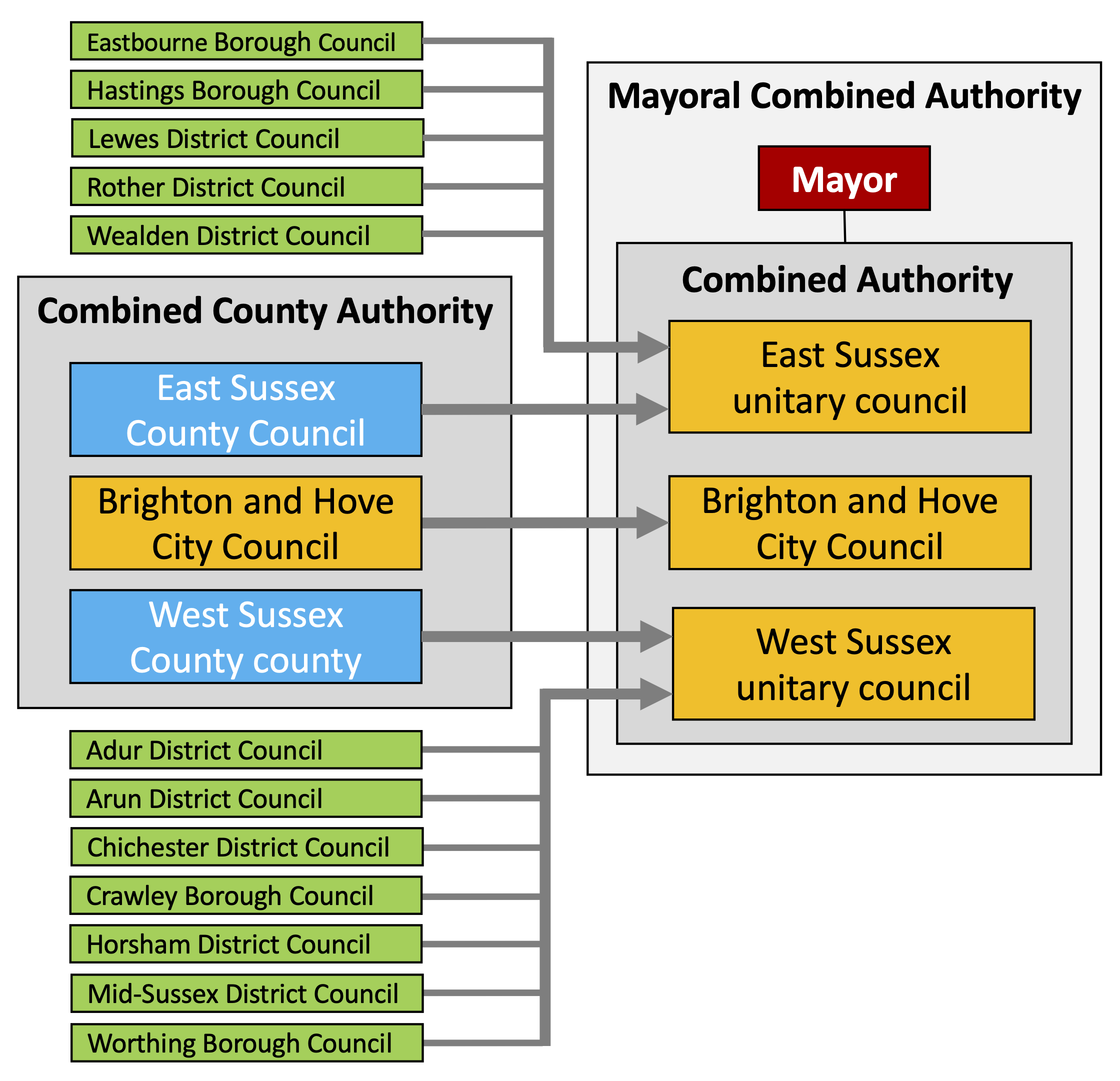 A separate proposal for an authority covering the coast of Sussex from Brighton to Camber is also being explored by local politicians.