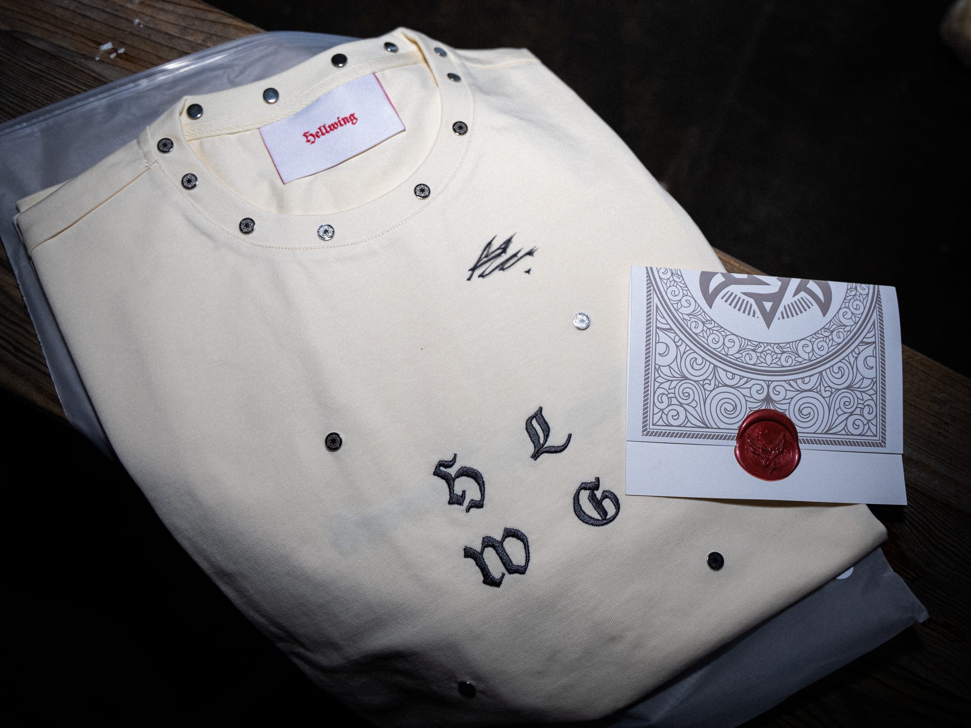 The name itself, Hellwing, came from wanting to explore those contradictions we all have, with a thriving twist. I’ve always found humour in how belief shapes us, how we still carry old sayings, rituals, and little superstitions without even noticing. Hellwing plays with that, turning those familiar idioms into something undoubtedly striking, wearable, and slightly tongue-in-cheek.