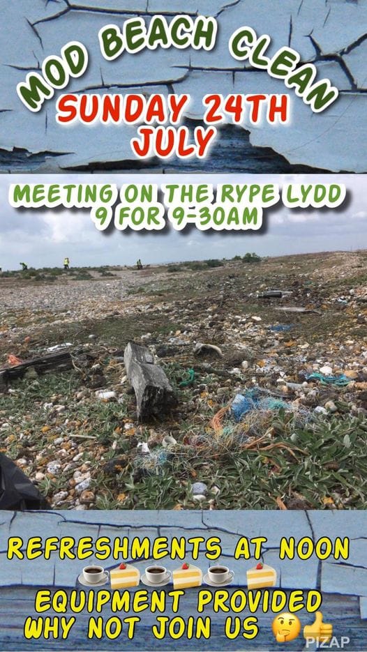 Romney Marsh Litter Picking Watch has been granted permission to access the foreshore on the MOD range at Lydd to continue removing debris washed up by winter storms. Bags, pickers, health and safety advice and refreshments will be provided.