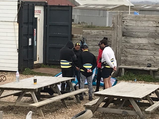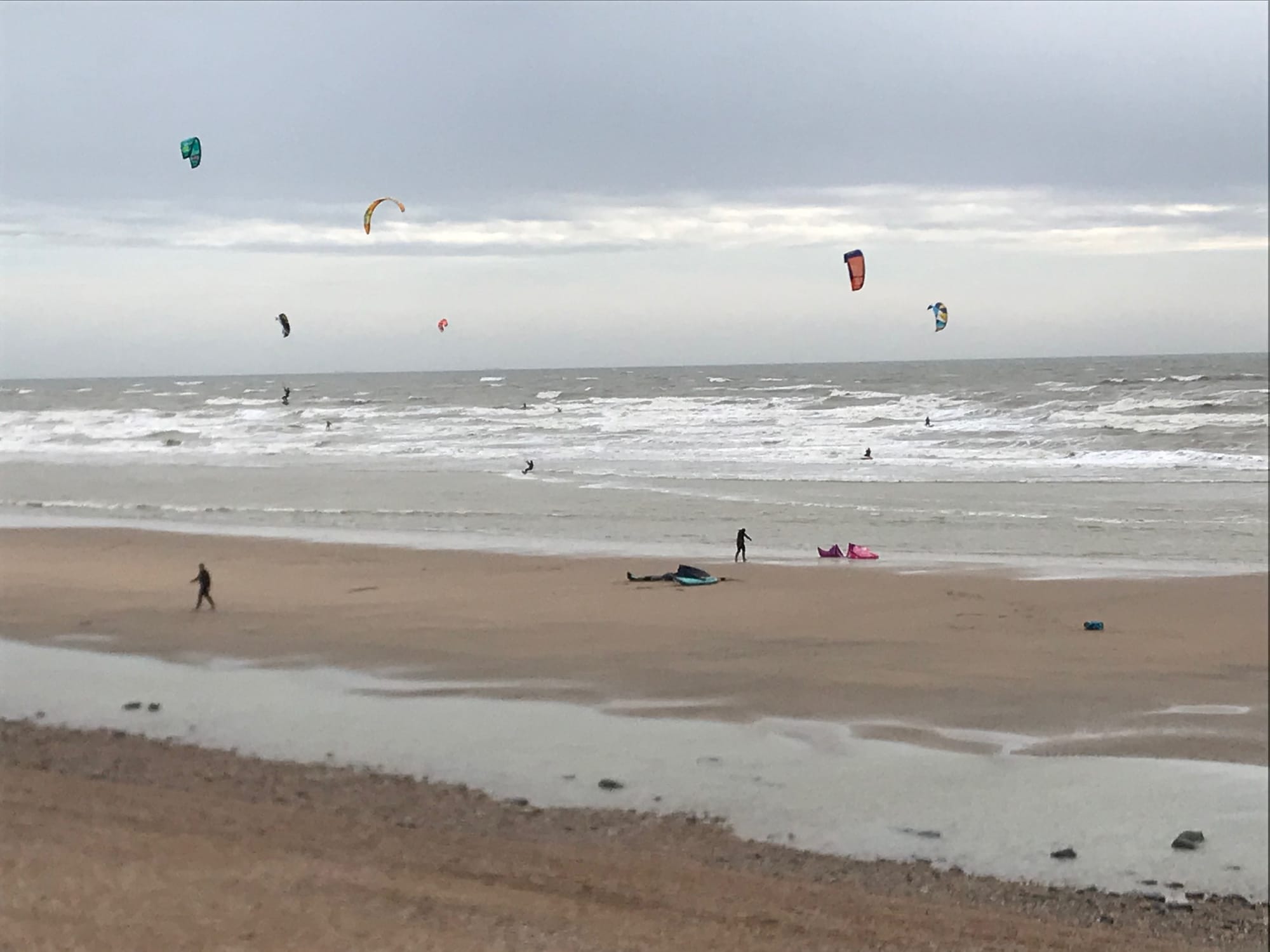There were teams of kite surfers preparing to enter the sea getting instruction from hardened professionals before taking the plunge.