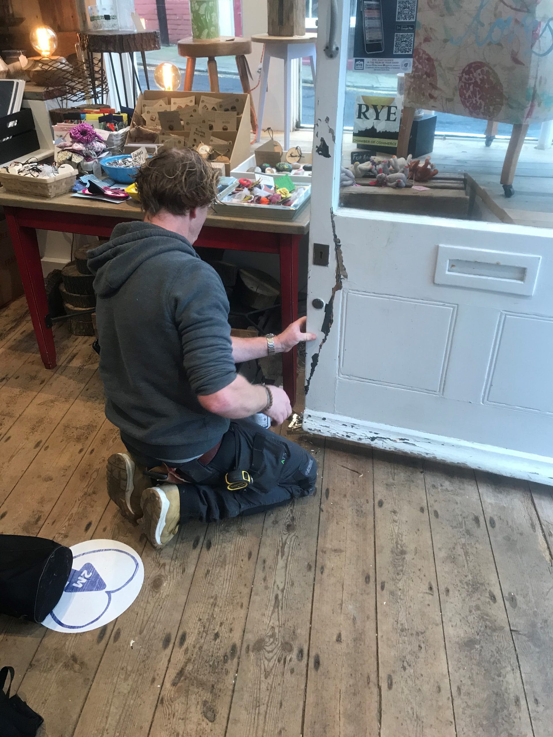 When I met Jo and Jason on Tuesday morning they were having to explain to their would-be customers that the shop was temporarily closed whilst the damage to the door was repaired.