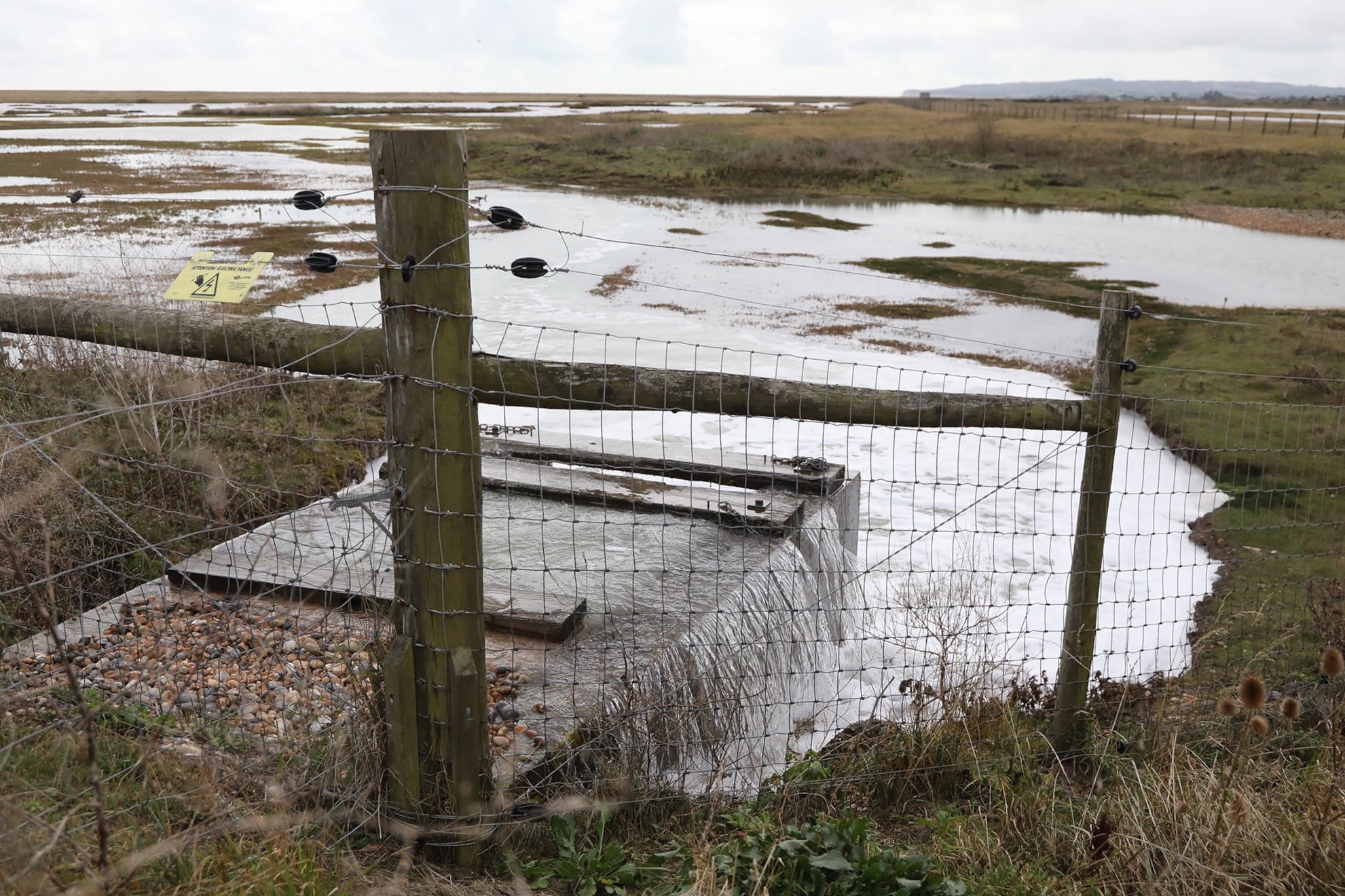 However that could have been worse had not much of the incoming tide been siphoned off into the nature reserve (on the right in the photo above) turning it slowly into an ever growing lake (as the photo to the left shows in more detail).
