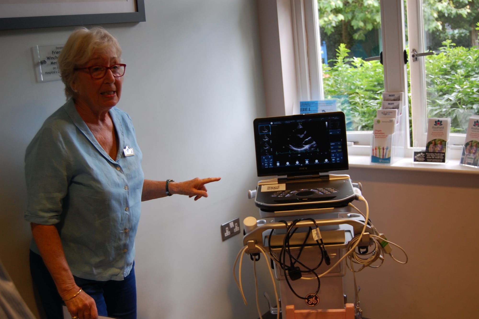 We split into three groups and made a round tour of the facilities. There was much to impress, not least the architectural design of the building itself which combines functionality with a brightness of natural light illuminating each department. The reception area has been redesigned, with an improved seating area for visitors. In one corner stood a brand new echocardiogram machine, a type of ultrasound scan for the heart and nearby blood vessels. The £40,000 cost had been raised by friends’ donations.