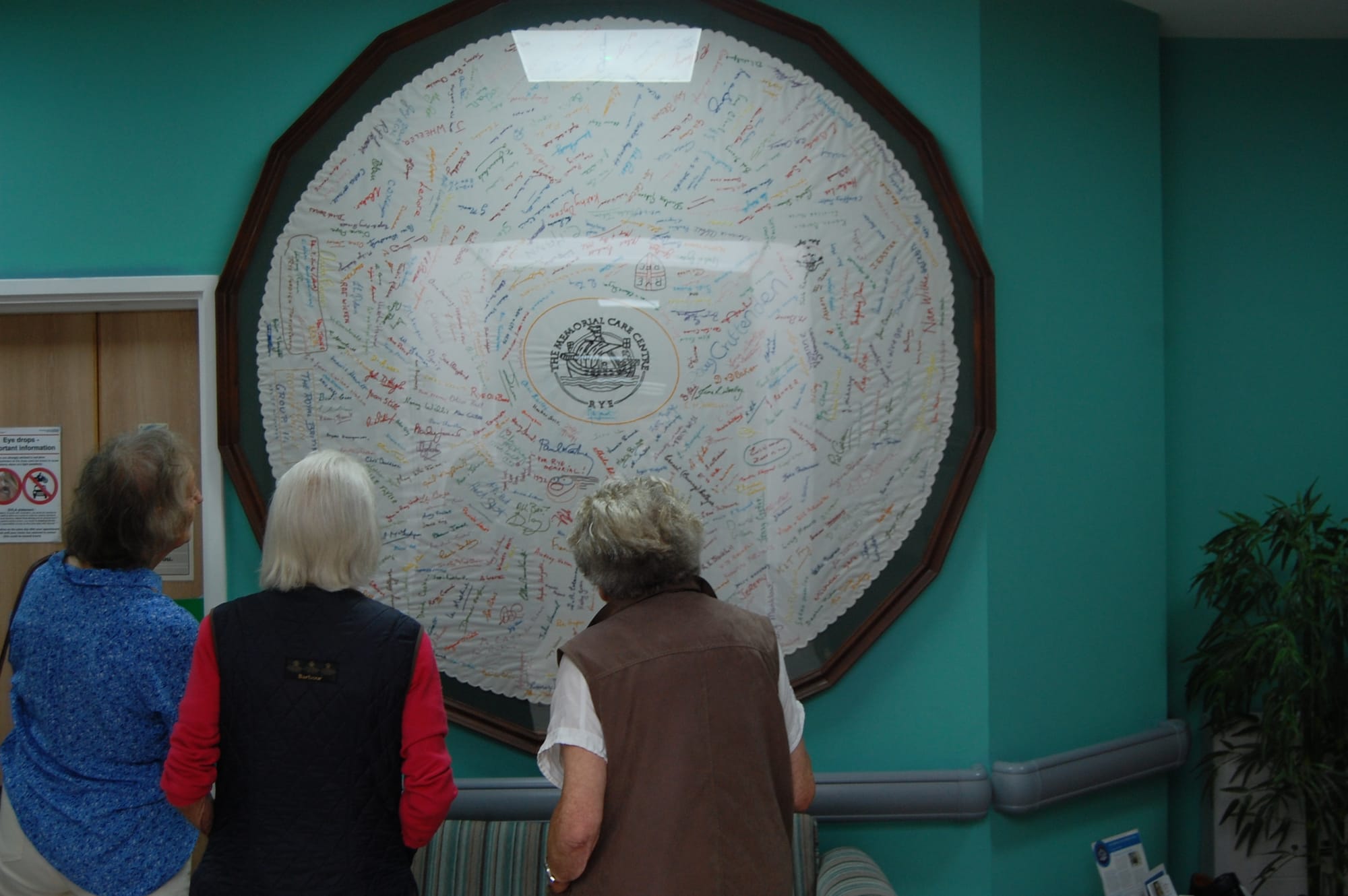 Walking to the outpatients department, we inspected the huge linen roundel displaying the signatures of those who had helped save the hospital from closure those many years ago. There are 19 beds for inpatients and their care remains at the heart of the hospital’s work, but the range of outpatient facilities has expanded enormously in recent years. We were shown the weekly programme of visiting health specialists covering a whole range of services.