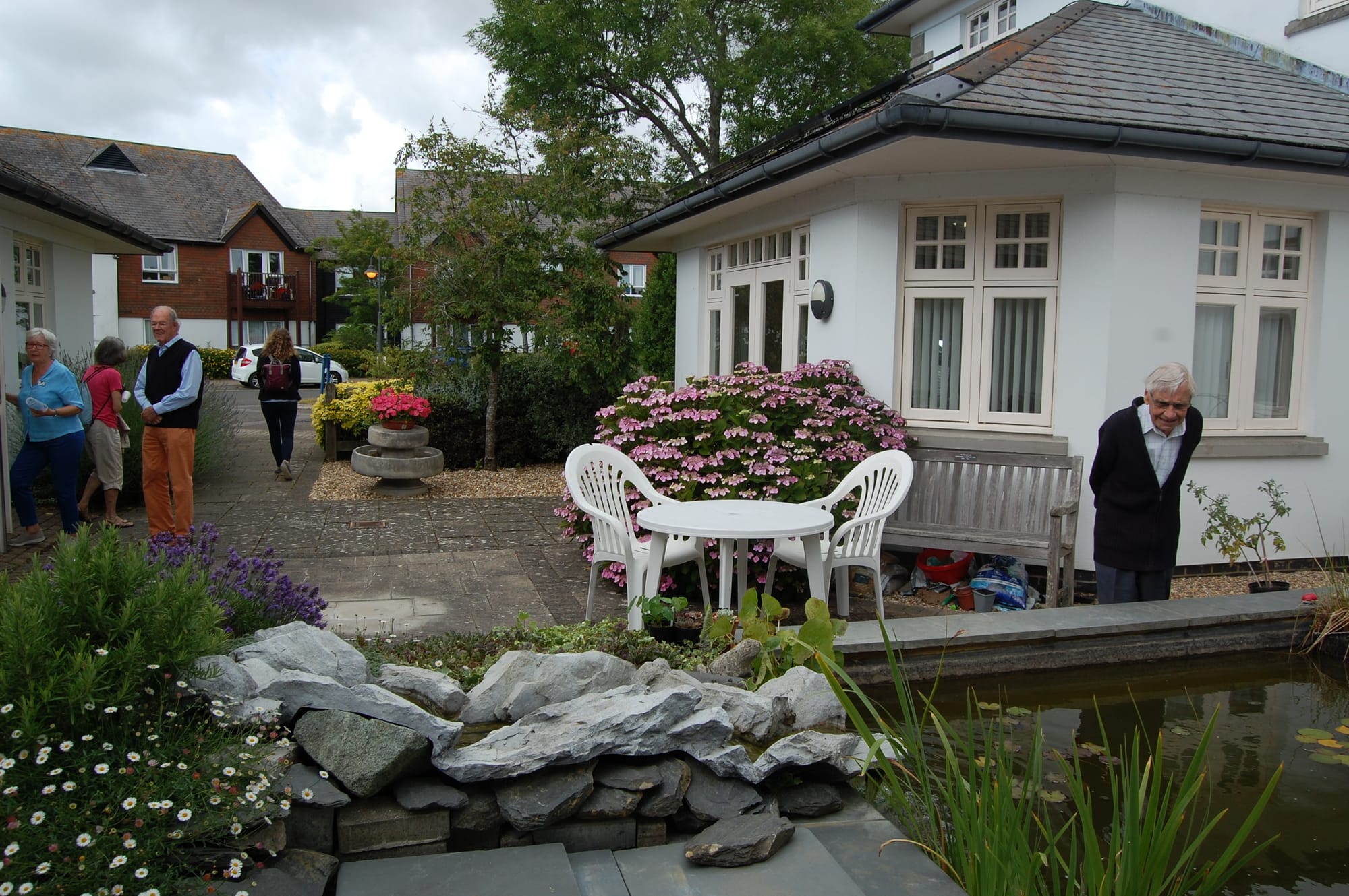 Upstairs are meeting rooms and admin offices and a staff room refurbished largely from a bequest by Maureen Getley who had been a long-time volunteer on reception. We descended to admire Barry’s garden, a quiet courtyard with pond and flowering shrubs, and then a walk through the wards to the large rehabilitation room, largely used for physiotherapy. Two exercise bicycles were in use and there were parallel bars to aid mobility recovery. The number of falls by not just elderly pedestrians in Rye was remarked upon.