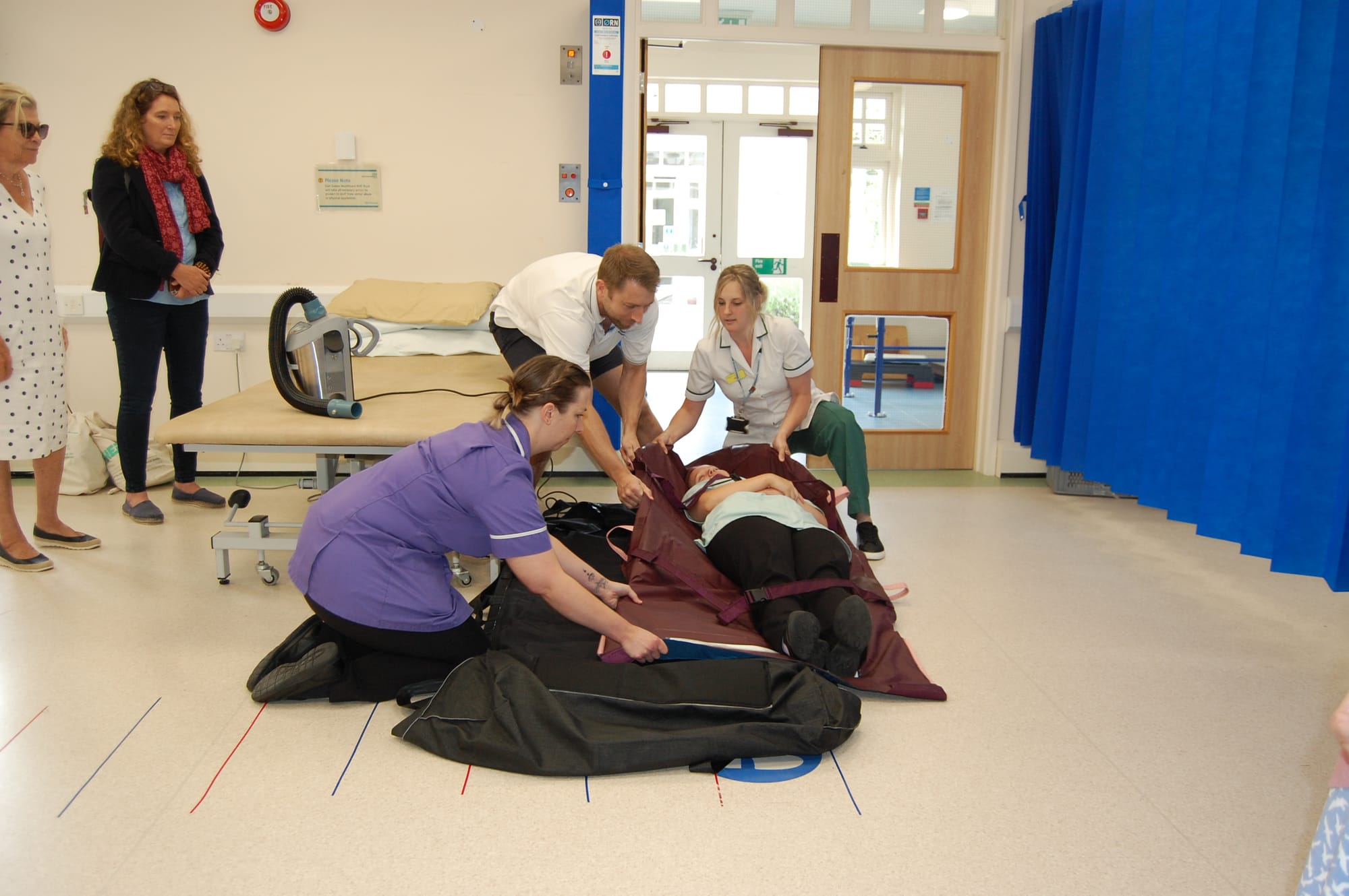 We watched a demonstration there of a newly acquired ‘Hoverjack’, an inflatable mattress system consisting of four chambers that are inflated sequentially to lift individuals comfortably from the floor to bed or stretcher height in a supine position. This piece of equipment costing £9,000 was also funded from friends’ donations.