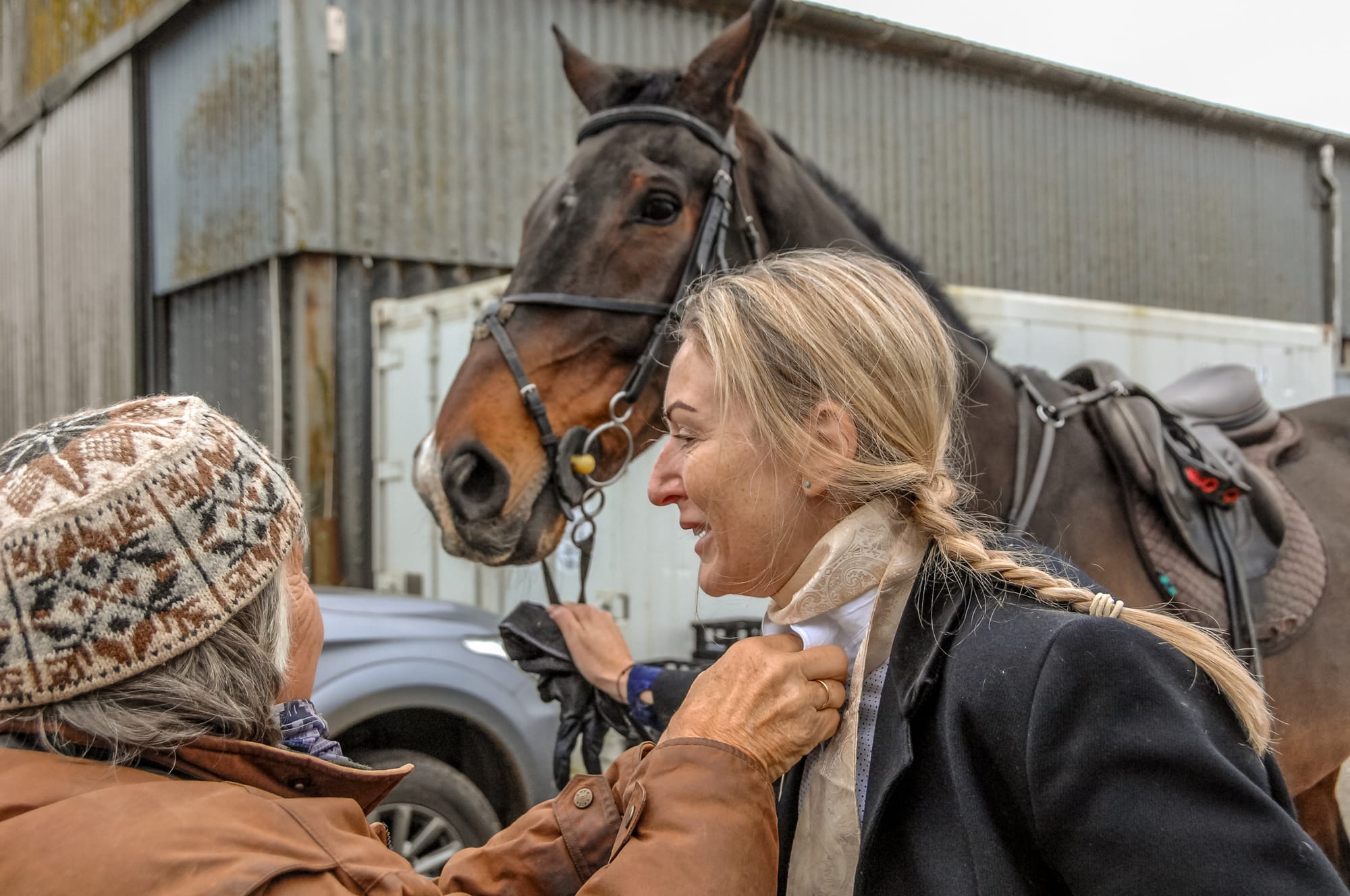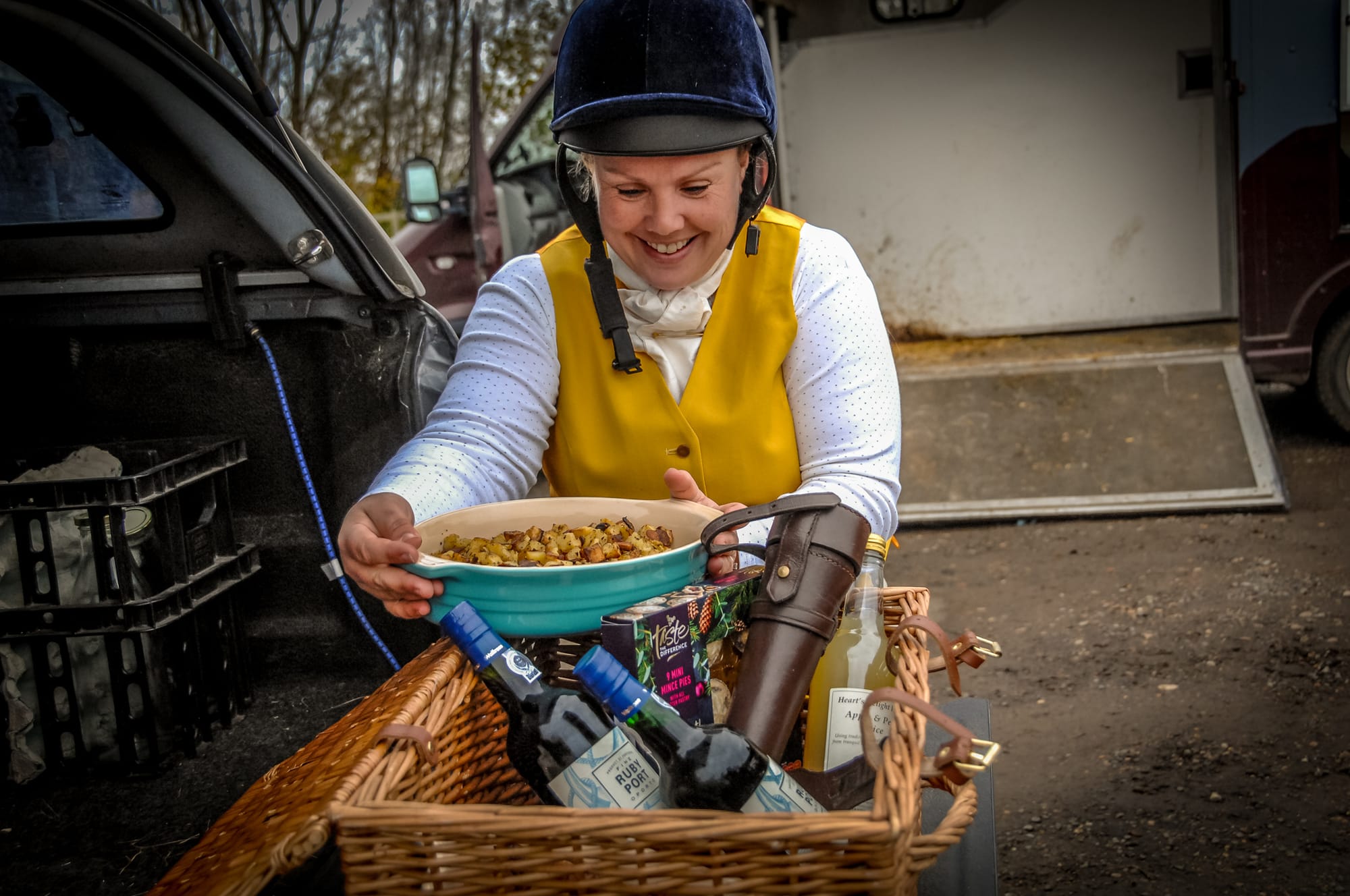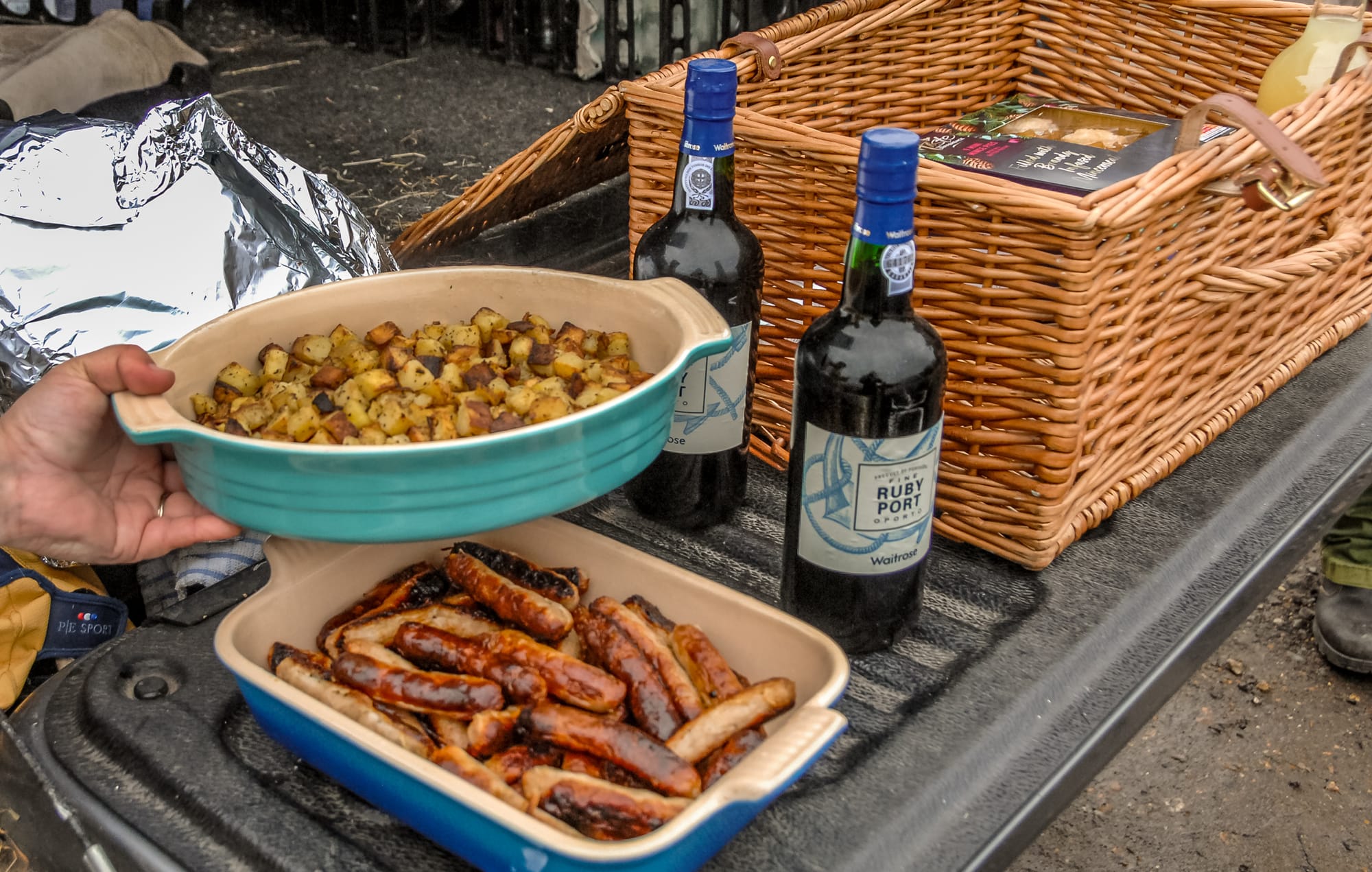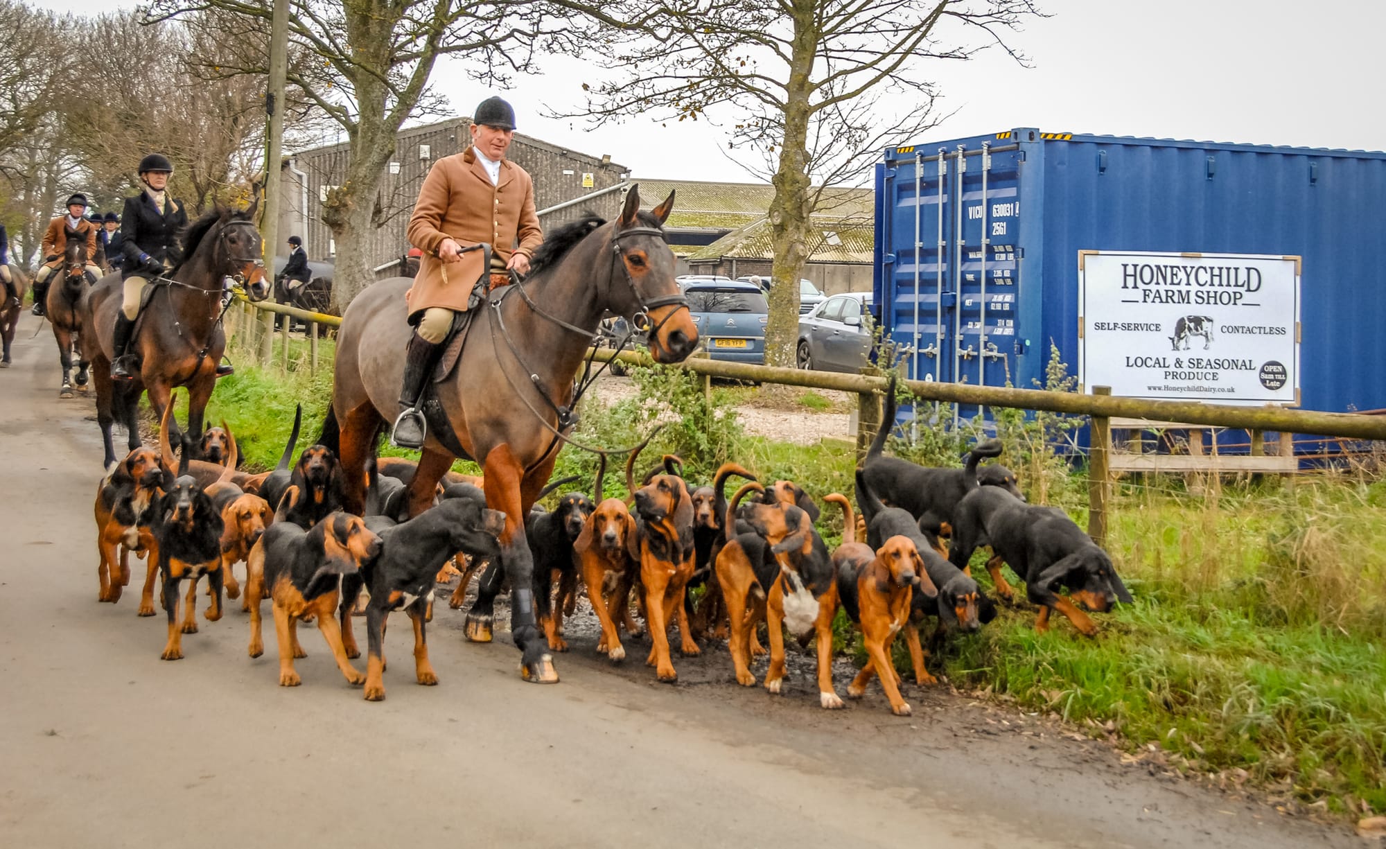 The meet at Honeychild Farm near St Mary-in-the-Marsh, was hosted by Amber Furnival, a great supporter of the bloodhounds, and the renowned ‘Honeychild hospitality’ of sausages, mini-roast potatoes and tipples of port was enjoyed by all – including some of the hounds.