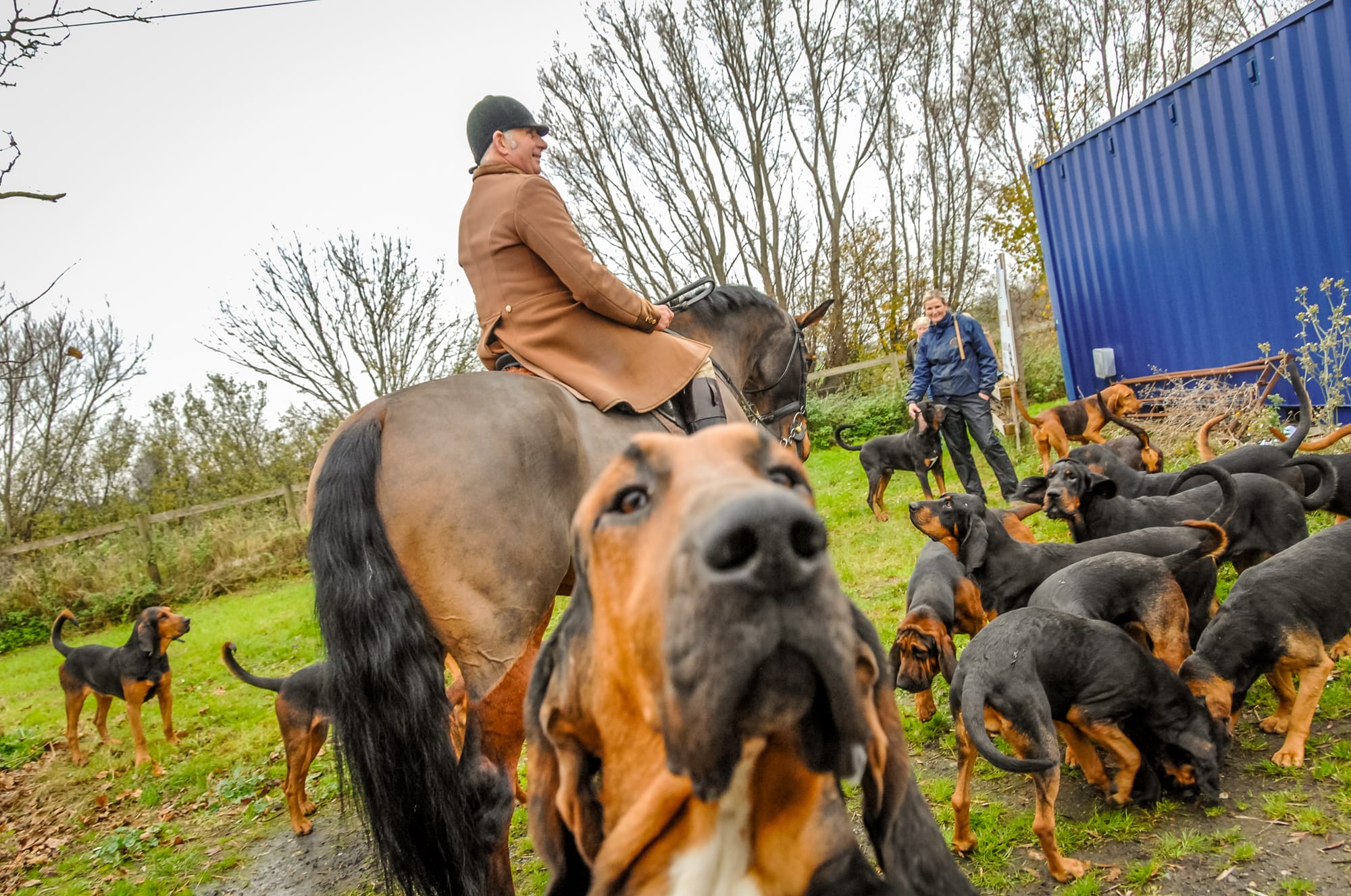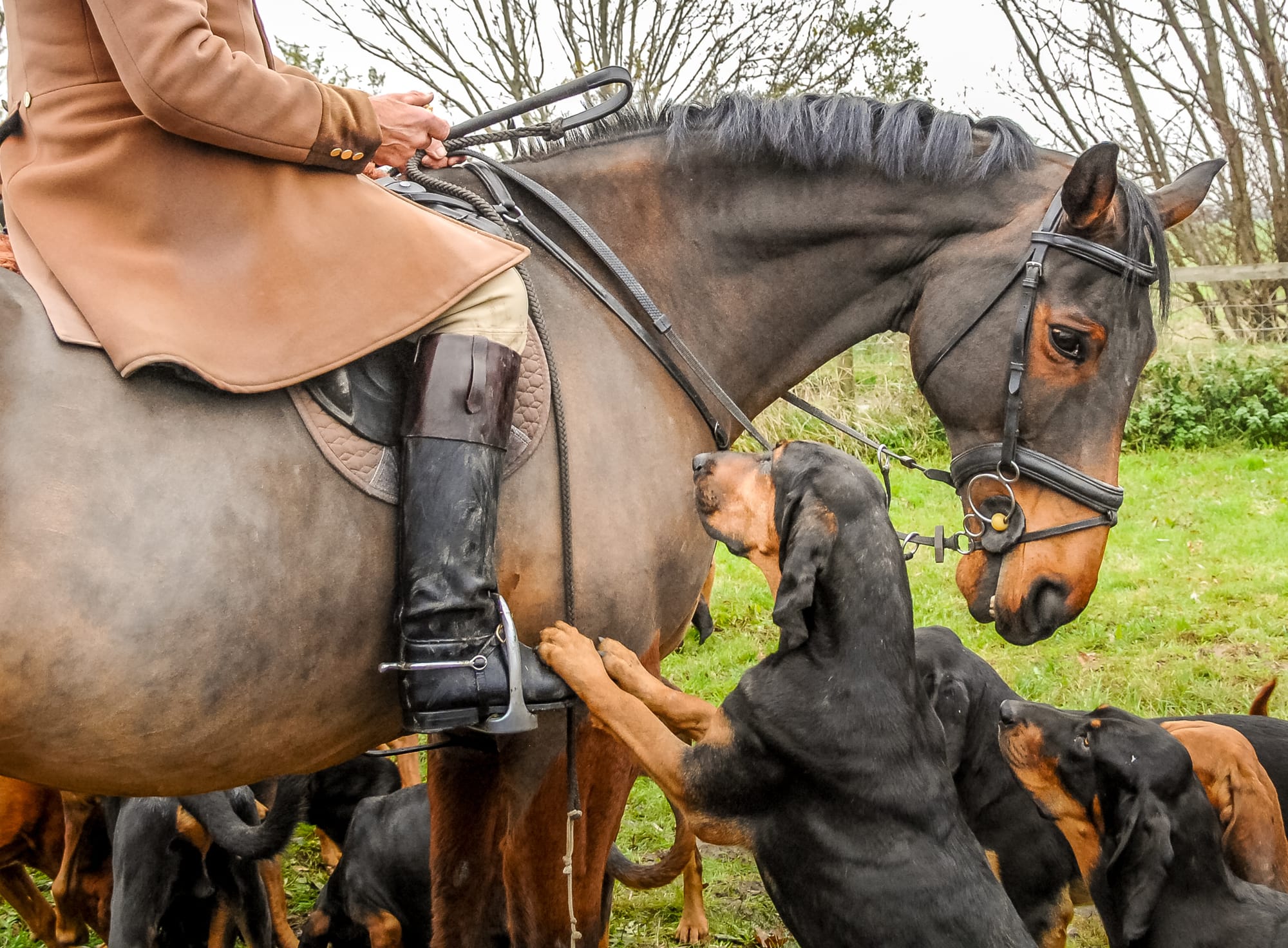 Unlike foxhunting, made illegal in 2005, the bloodhounds, based at Ashburnham near Battle, follow the "clean boot" – the human scent left by a man or woman running ahead of the pack. All their meets are held by the generous invitation of farmers and landowners, which is greatly appreciated by members as this type of hunting offers no clear benefit to farmers.