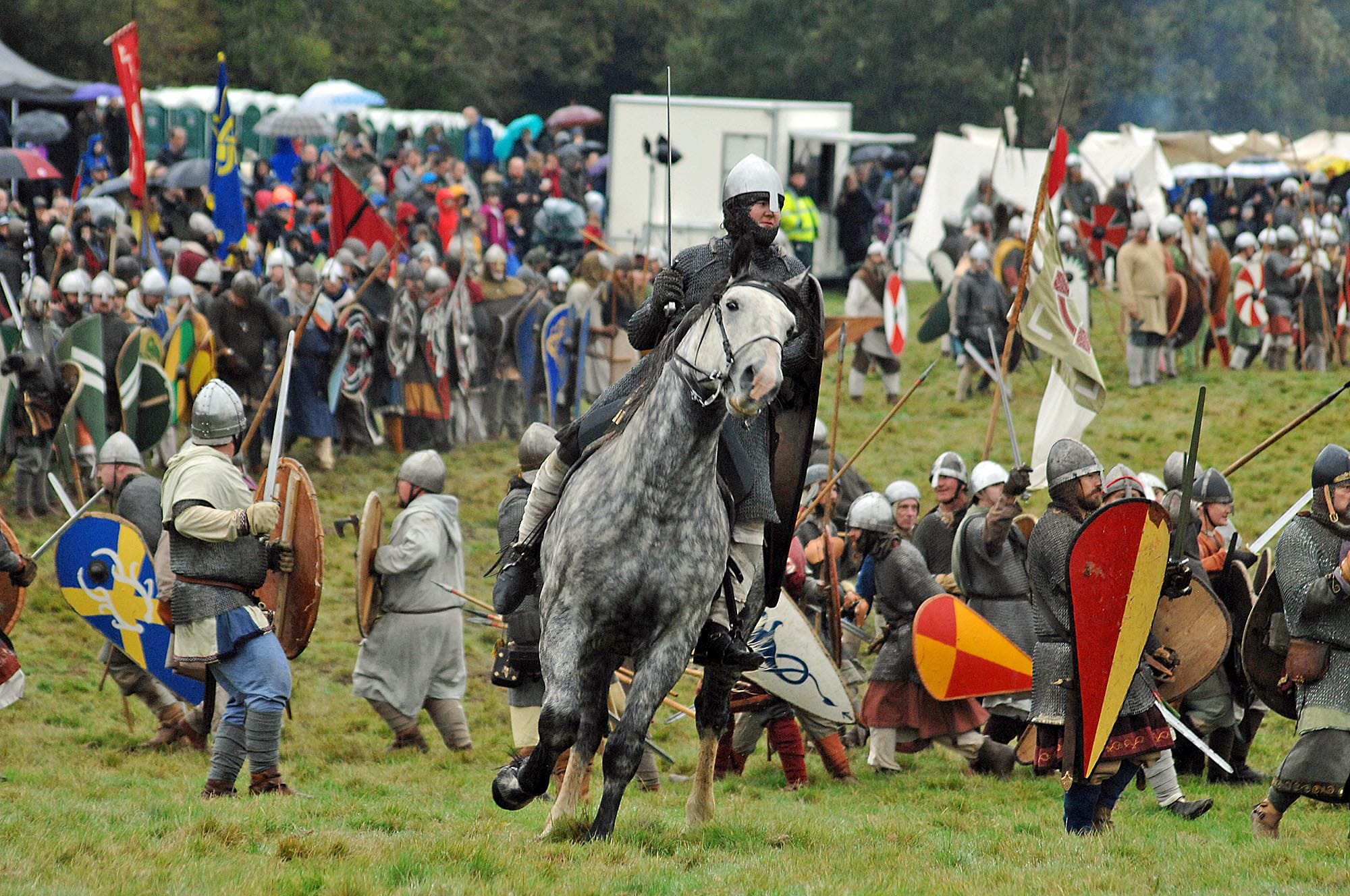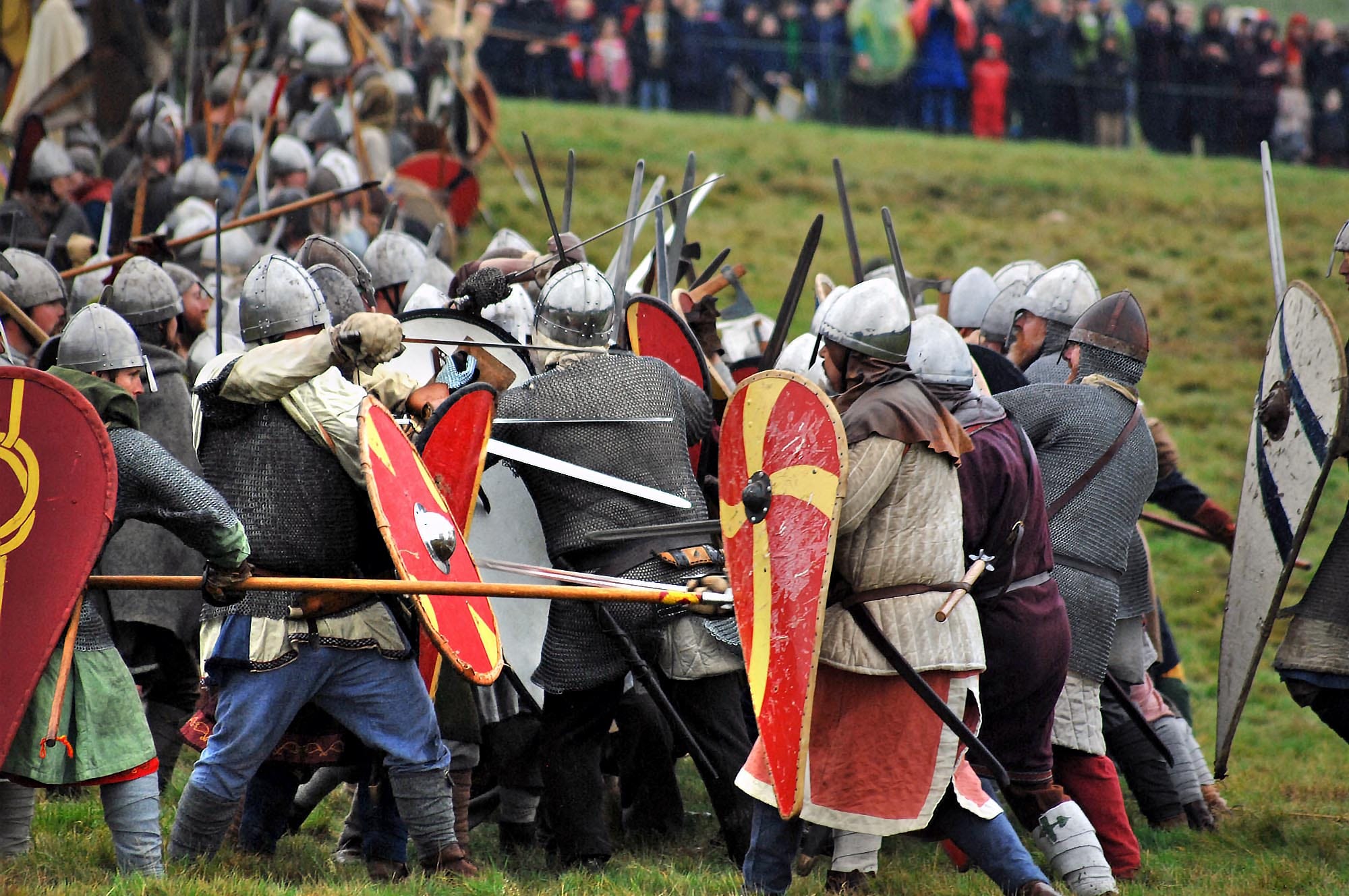 Nearly everyone depicted in the battle scenes on the Bayeux Tapestry carries a spear. It is difficult to see but most of them hold their spear behind the centre of gravity, presumably in order to extend the dangerous end as far as possible in front of them.