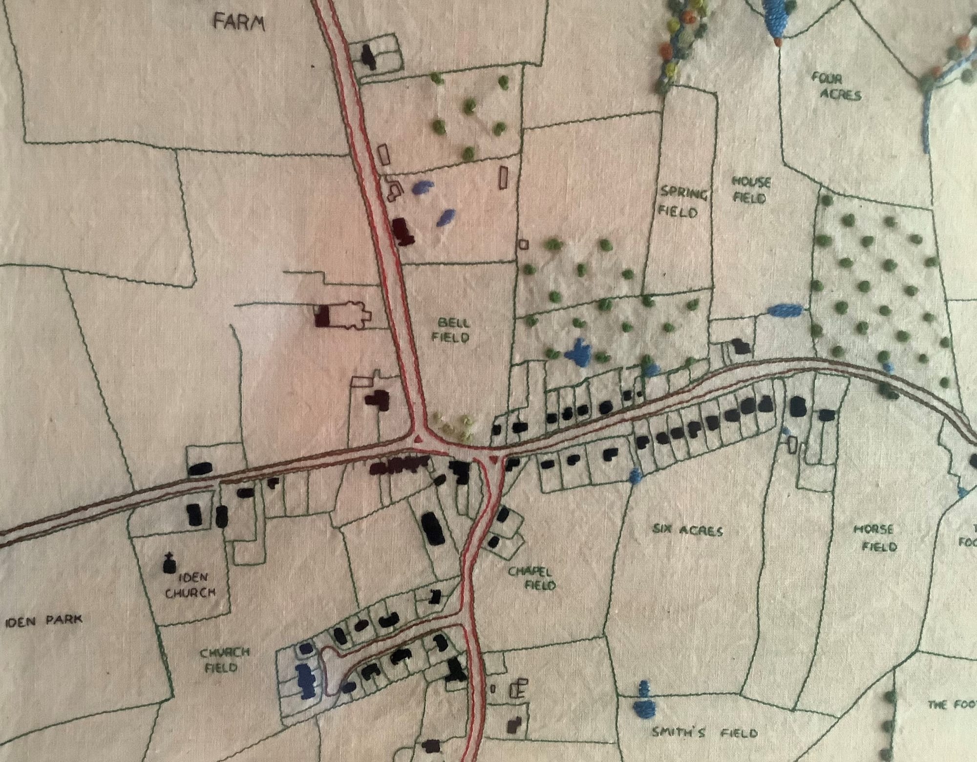 The Village Hall was open again on Saturday when we were able to take a closer and more leisurely look at the exhibits which included a fascinating map of the village naming every field, embroidered by Jane Coleman in 1967/8.