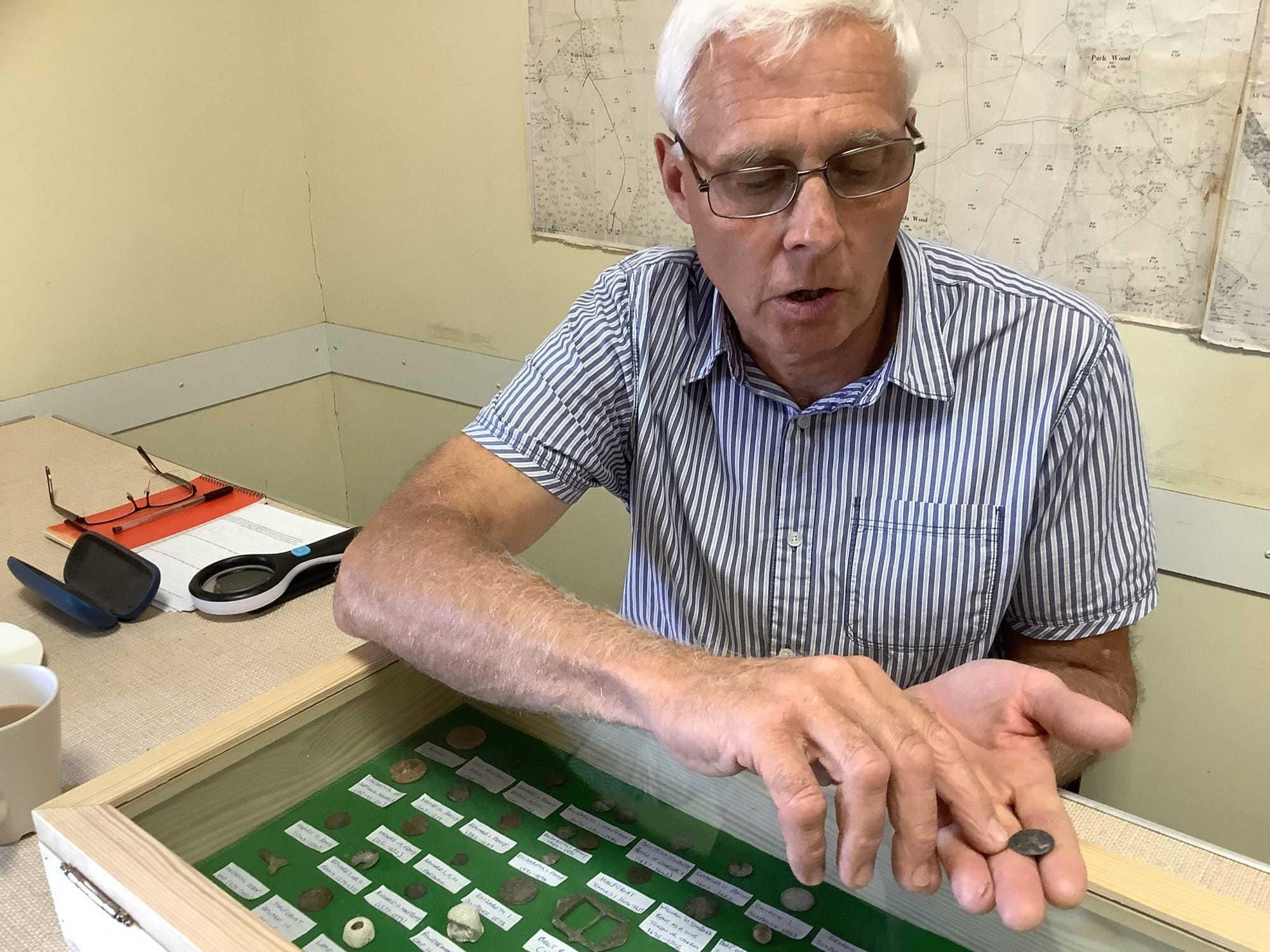 Our village detectorist, Chris Turk, was there with a case of objects that he has found around the village including an Elizabeth I coin, buckles, buttons and other treasures.