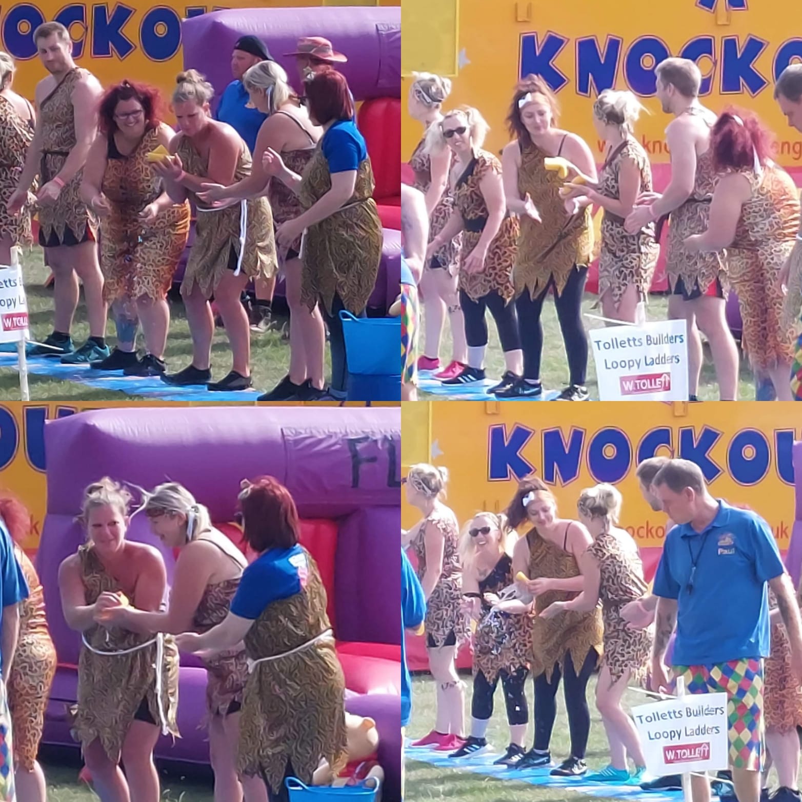The Ryebellion Drummers built the anticipation for the start of the Knockout games by marching around the arena whilst the teams gathered to assess the course and discuss tactics. The mayor, Andi Rivett, said a few words before officially opening the Knockout competition. Then the fun really began for the seven teams who had bravely put forward willing members ready to bounce, slide and at times, crawl over the course. The Prehistoric Hospital Heroes, GMP Accountants, Team Tollett, the Rugbytots, The Queen’s Head and Rye Runners (who entered two teams) battled it out all morning before a well-earned break for lunch.