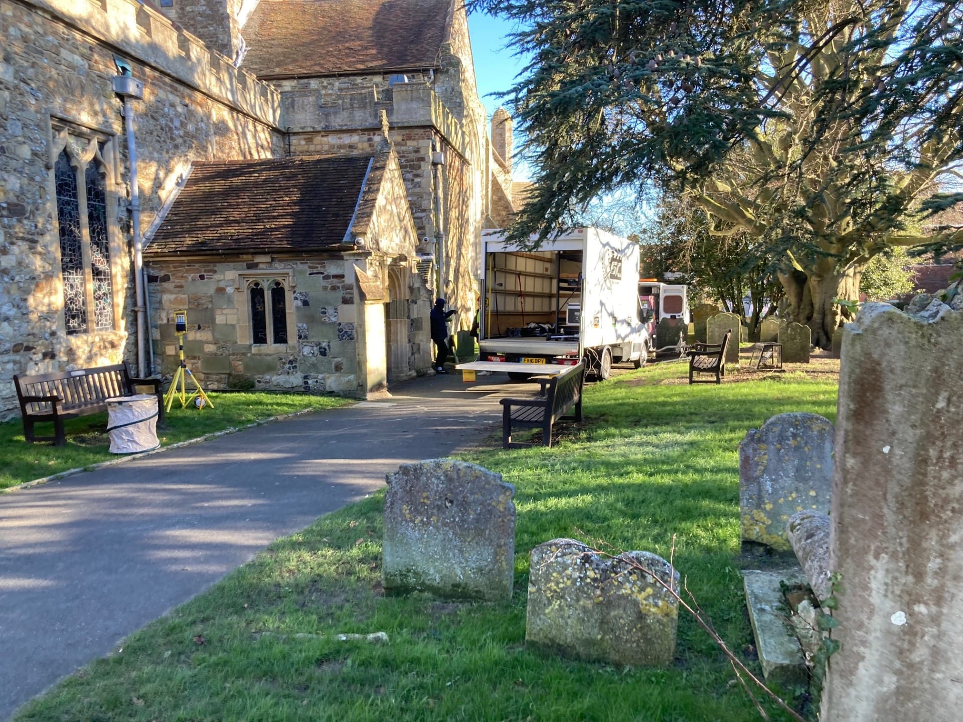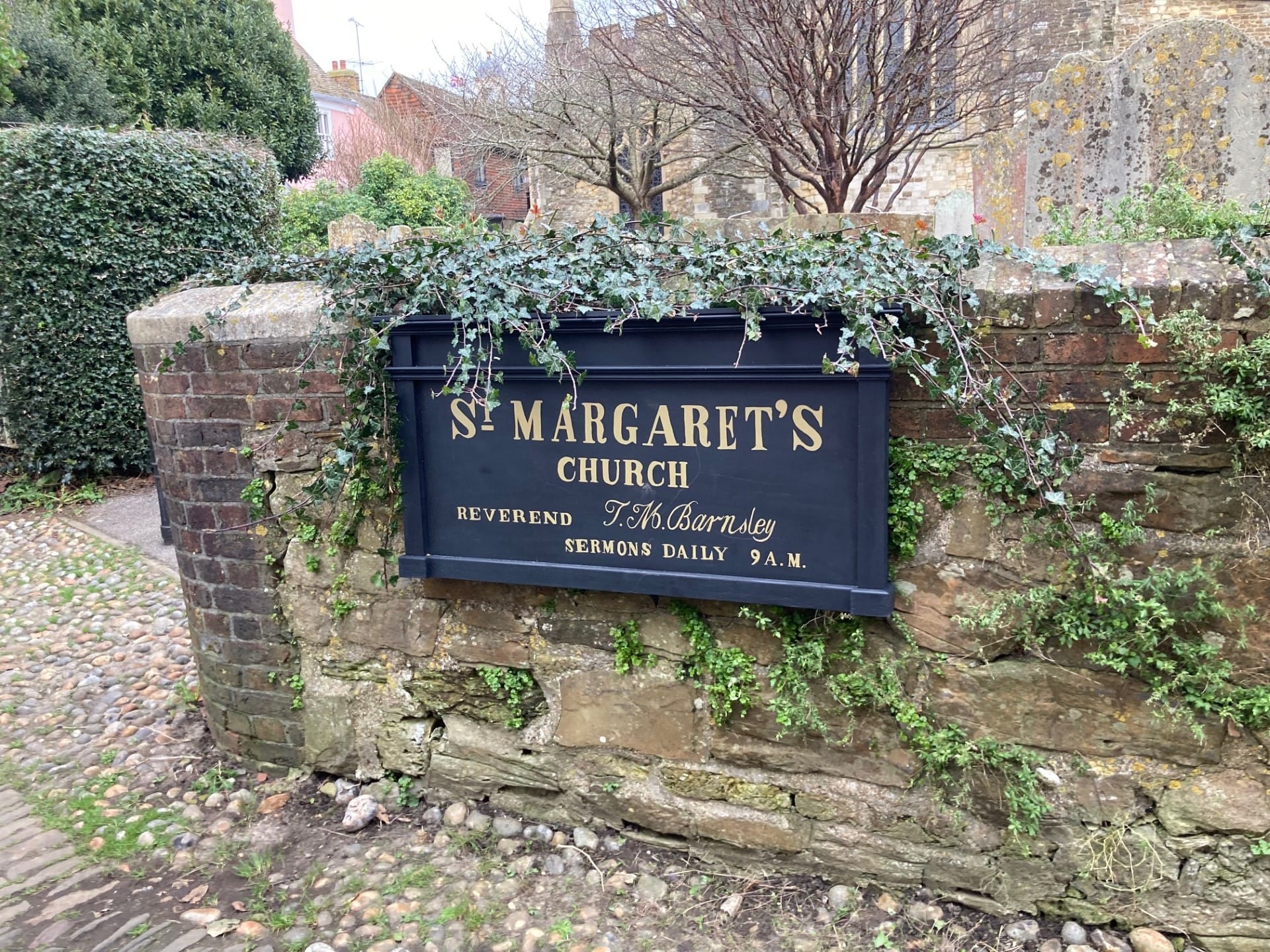 There was also a lot of filming along the street to the west of the church, whose name they changed on a plaque to St. Margaret’s Church, sporting a vicar called the Reverend Barnsley, who gave sermons daily at 9 am!