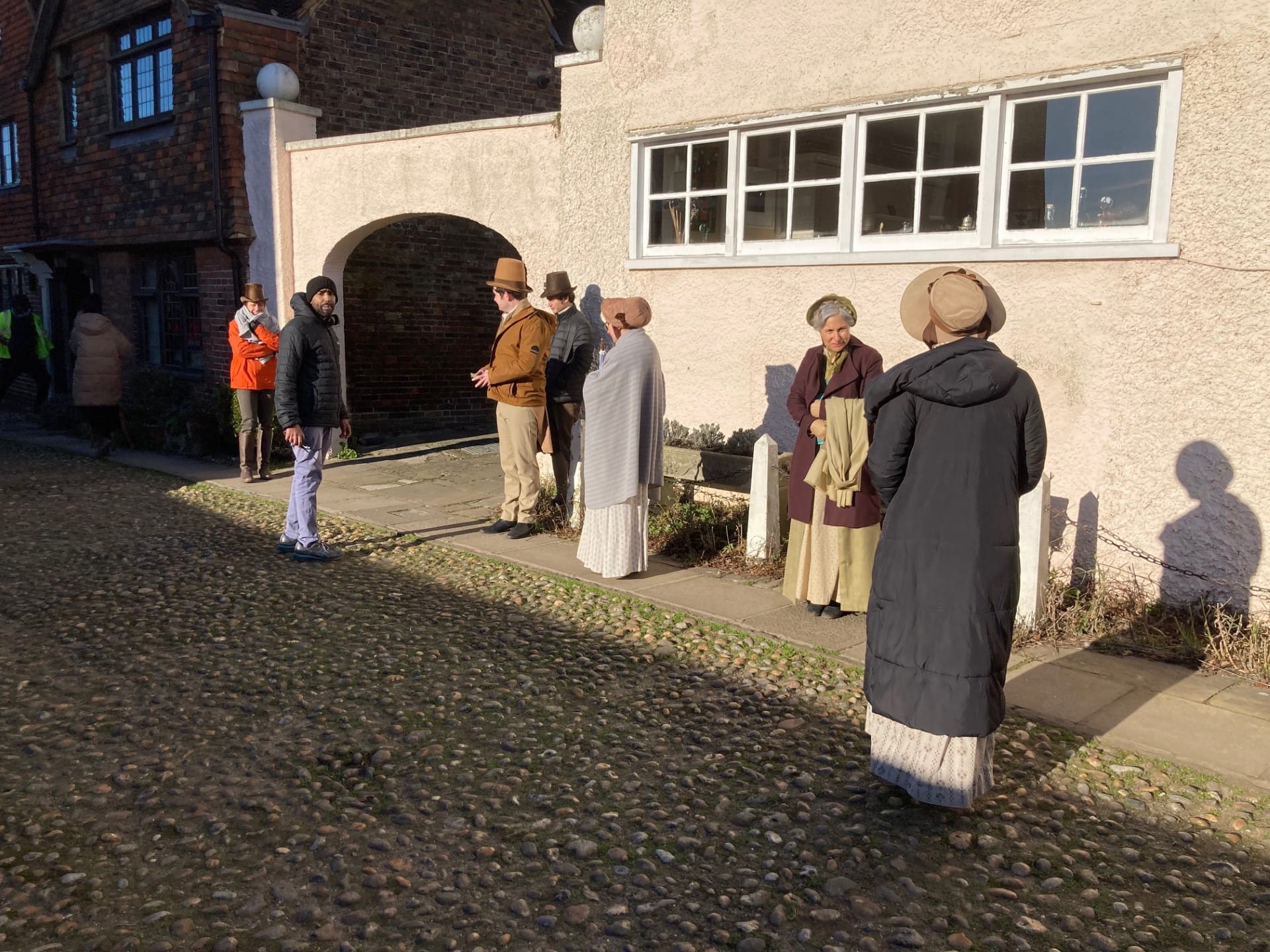 However, it was a sunny freezing morning! It looked very nice, but the temperature never really rose. I chatted to one extra in a curly-brimmed top hat who said he had two pairs of thermal tights on under his leggings, two vests, and hand warmers under his black leather gloves. He still looked extremely chilly, and he was there until the end of the day, along with most of them.