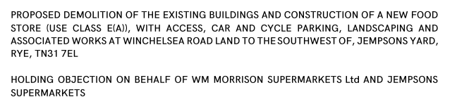 The Leeds-based firm say they are representing Jempson's and partners, Morrisons, in objecting to the plans. “Our clients have significant concerns about the development, specifically, the adverse retail impact the proposal would have on Rye town centre…Jempson's operates a town centre store that anchors the town centre and loss of trade to this store is likely to result in loss of trade to the wider town centre.”