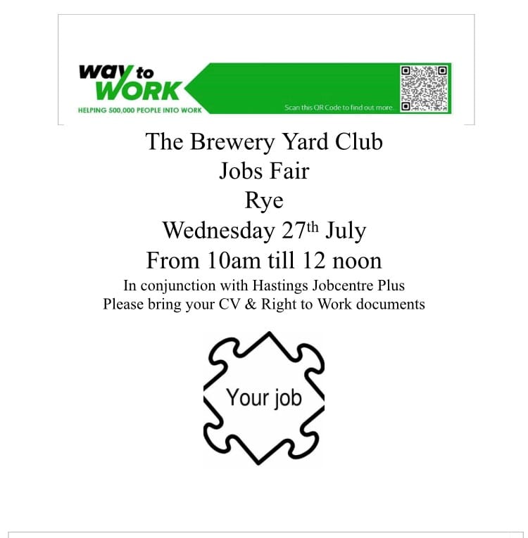 For employers: the DWP will start to invite those whom they know in Rye, particularly in the hospitality sector who are really struggling at present. They collate CVs for the businesses who are too busy or unable to attend and, for those employers who are able to come along, the DWP will facilitate "speed dating" style interviews at the jobs fair.