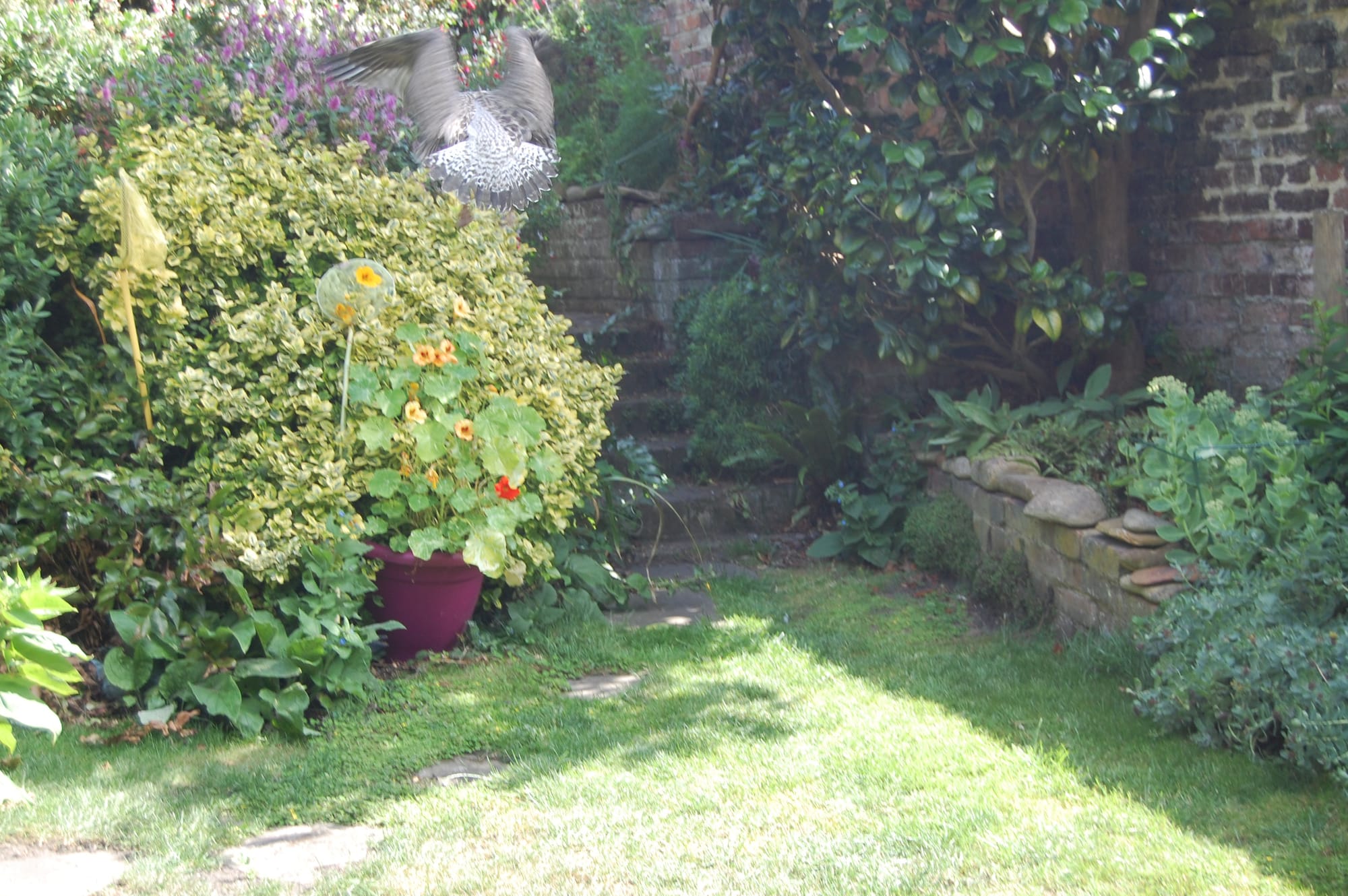 I was enjoying the stillness of the garden the other day when my visitor arrived, with much flapping of wings. We made polite conversation for a while, but my unspoken thought was "Have you come to stay?"
