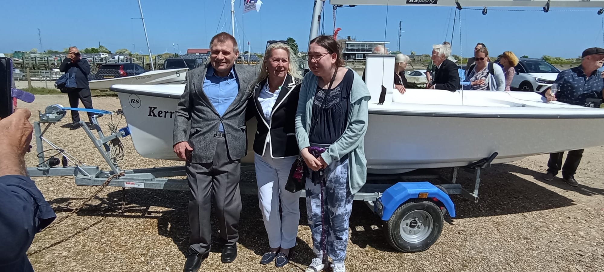 RHS hosted the event, at Rye Harbour Sailing Club for the official naming of the RS Venture Kerry. Guests, including Sally-Ann Hart MP, were arriving for the 12:30pm start, welcomed in by Sailability treasurer Ronan Quigley who gave a brief introduction before handing the microphone over to organiser Caroline Wylson. Caroline gave a potted history of RHS and how it has now purchased three boats, thanks to the huge support from fundraisers and donors who were present. She stressed how important it was to not only raise funds but to have new volunteers join the charity.
