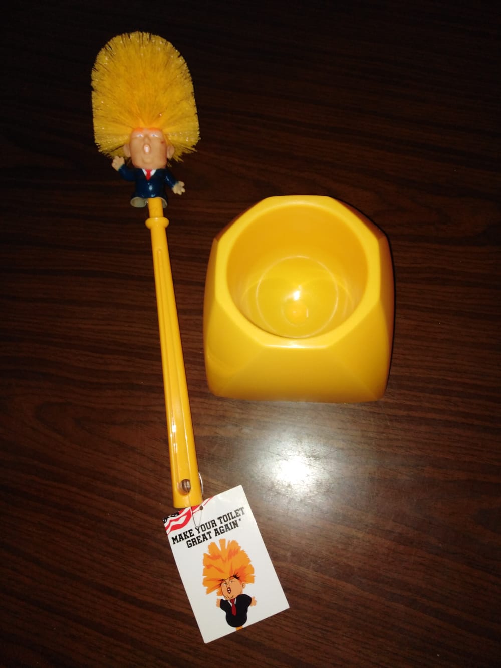 There will also be a silent auction for an essential item that every house needs - a Donald Trump toilet brush. Get ready to bid.