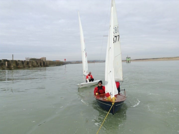 The last race was held on Sunday December 17, a bitterly cold day with sub-zero temperatures but, alas, no wind. The competitors were towed out to Rye Bay, where it was hoped there might be some wind, but once cast adrift for the start, the picturesque sight of the dinghies by the Port marker at the river entrance was something that might inspire Turner to paint, rather than being the prelude to an exciting race.