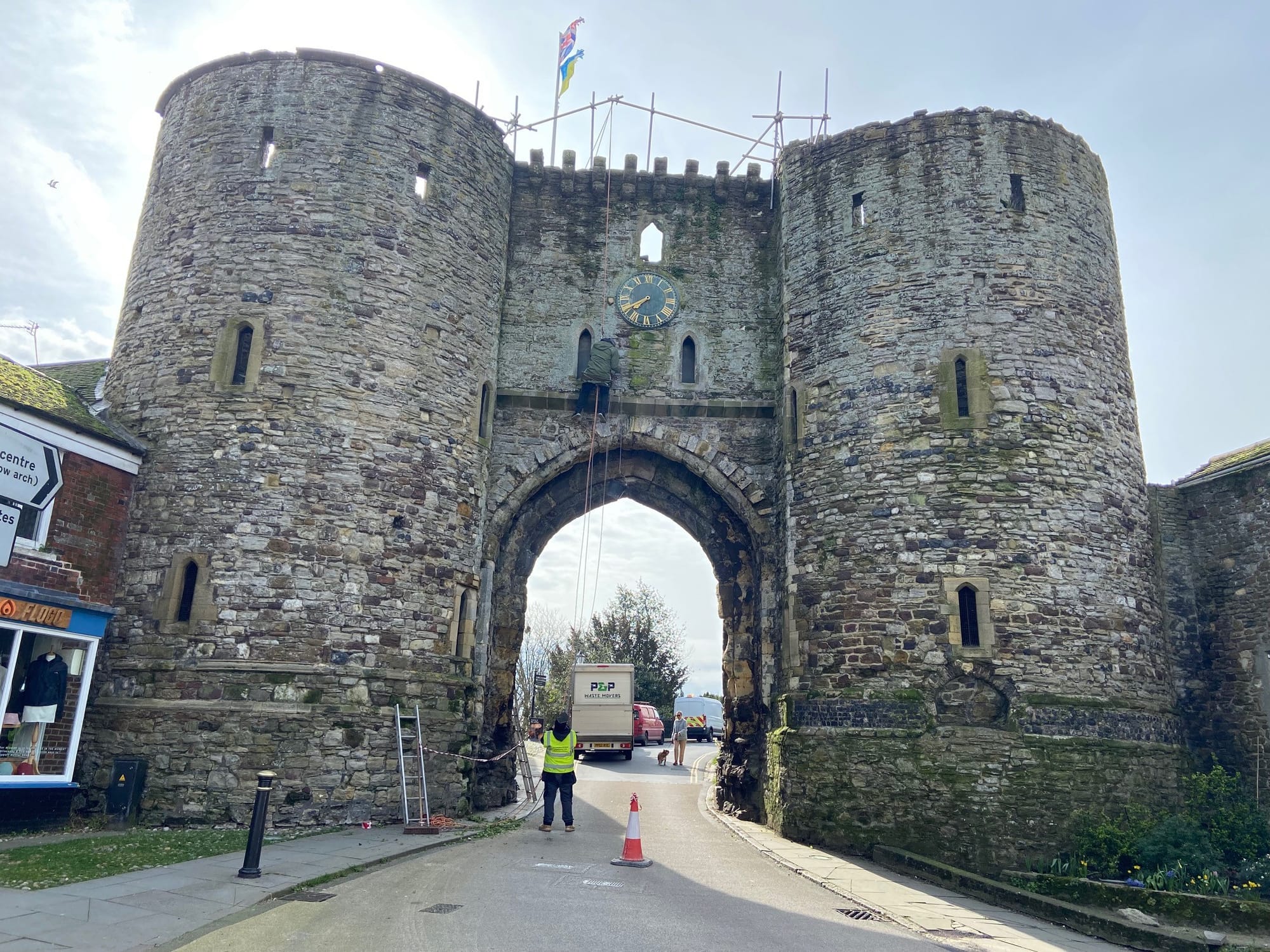 Thanks to regular Rye News contributor Isabel Ryan for sending in this series of photographs taken last Tuesday March 26, showing the two-man cleaning team in action removing foliage from the Landgate.