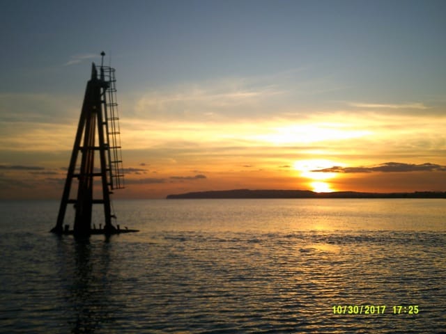 The first day's sail, on leaving Poole, was deliberately intended to be a shortish one - over to Yarmouth on the western end of the Isle of Wight, where we sat out the remains of storm Brian. In a reasonable amount of comfort, as it turned out, with Chris getting to grips with the yacht's galley and providing roast duck and a rather good red wine. But we couldn't hang about too long and the next destination was Bembridge, at the most eastern end of the Island where we were tide-bound for a further 24 hours. The approach to the harbour is along a twisting and very shallow channel and as high tide was in darkness the following day and I was not prepared to try and find my way through an unfamiliar and unlit channel in the pitch dark, we stayed where we were, finally getting away at first light the next morning, when it was just possible to see the buoys marking the channel ahead of us.