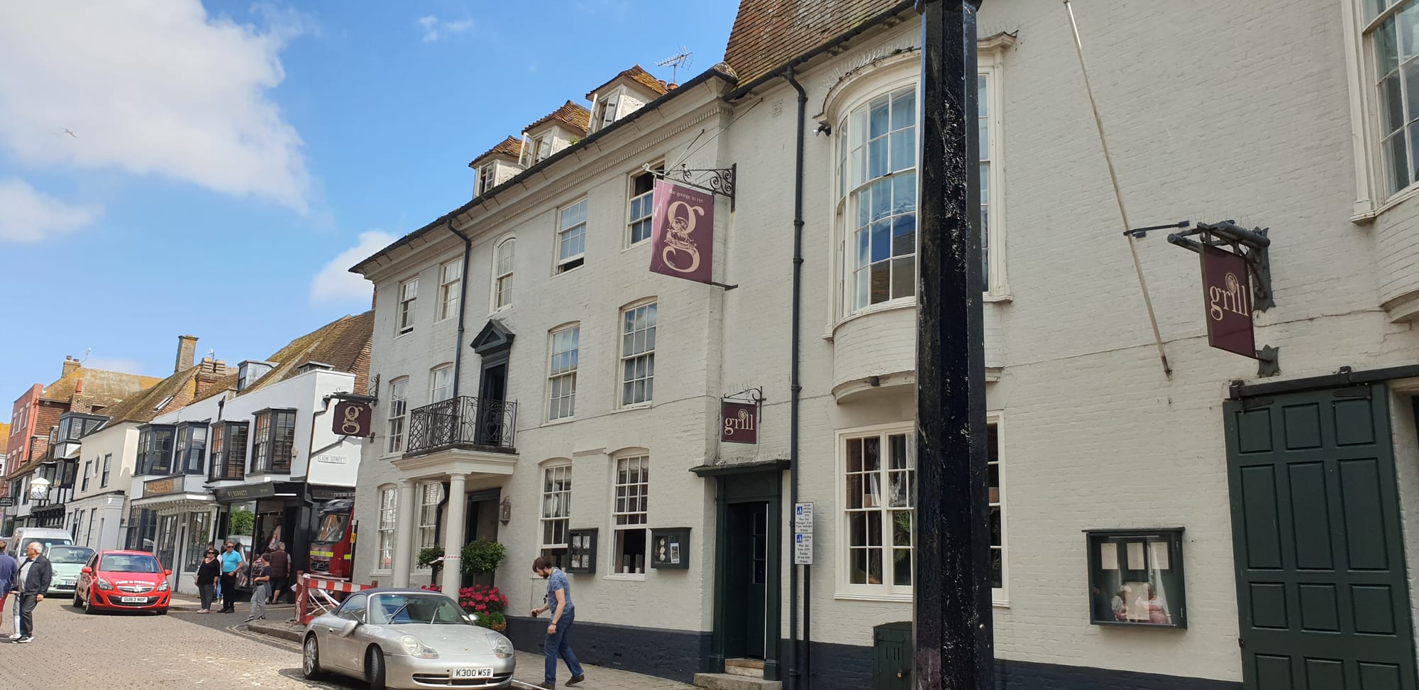 Rye is a largely medieval town with narrow streets and closely packed houses built in a time long before fire-resistant materials had been thought of. The George, fortunately, is one of the taller buildings and so the blazing roof timbers were relatively isolated from surrounding properties. Had it not been, the delays in bringing up the right equipment could have resulted in the fire spreading rapidly, not just along the high street, but also to the narrow streets behind.