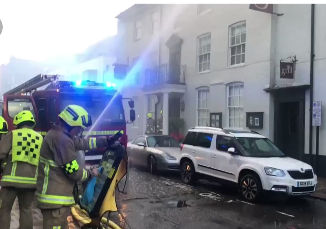 For quite some time after the fire had been reported and the local Rye fire station were in attendance, it was apparent the the firefighters, efficient and dedicated as they always are, simply did not have the equipment to be able to reach and direct water on to the top of the building where the fire was at its fiercest. Witnesses from a nearby vantage point saw clearly that water from the hoses was not reaching the heart of the flames.