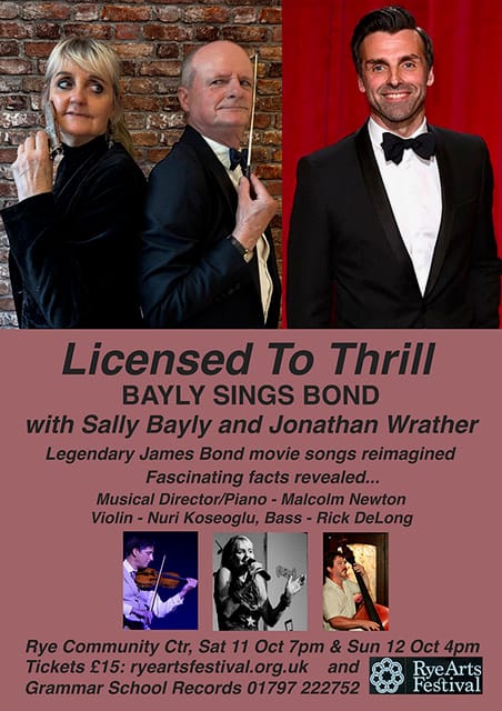 Performances at Rye Community Centre: Saturday October 11 at 7.30pm and Sunday 12 October 12 at 4.00pm. Tickets £15 from ryeartsfestival.org.uk and Grammar School Records, High Street, Rye, 01797 222752.