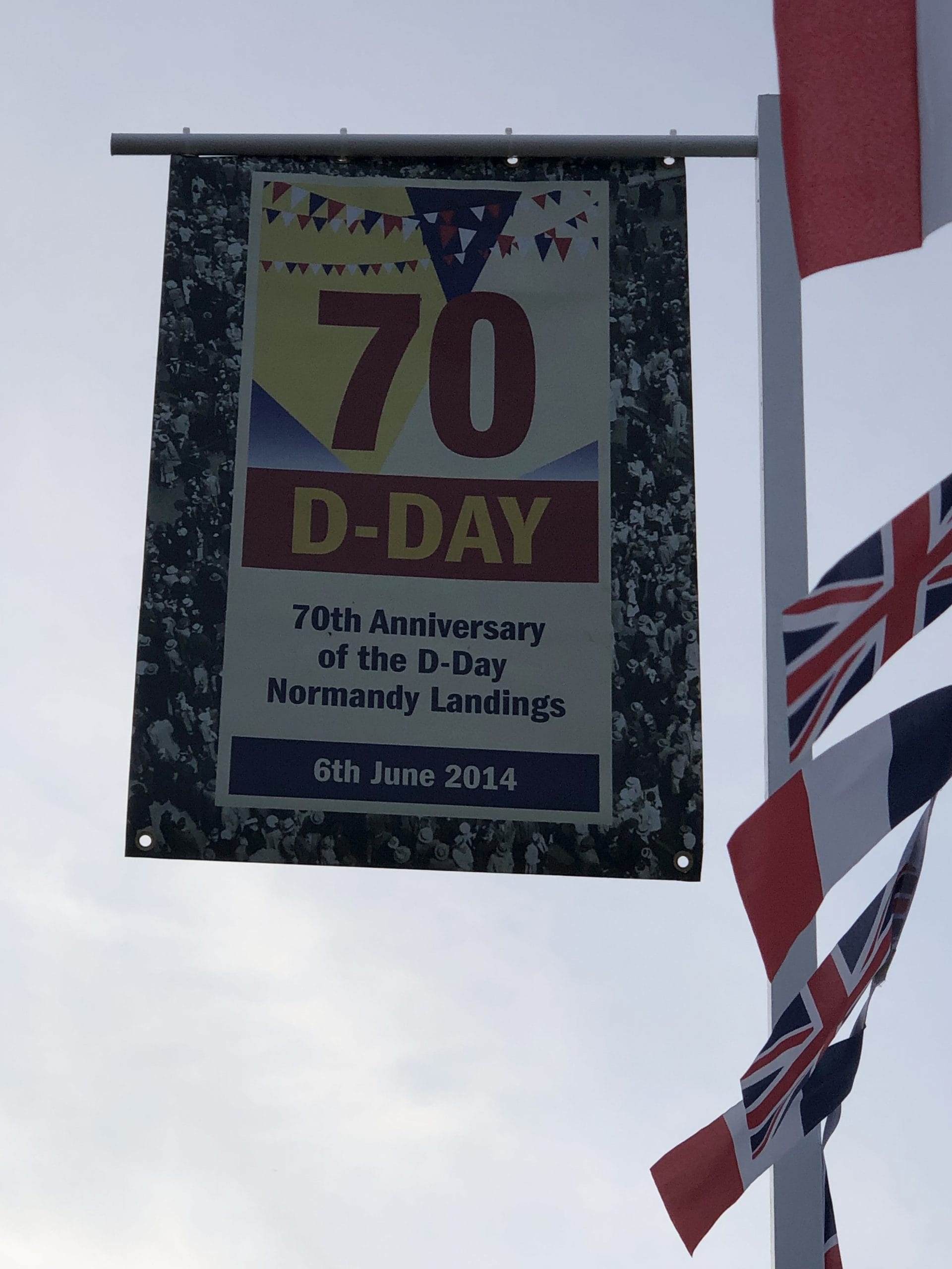 Camber has been alive with activity of a different sort in the last few days, extra cast members have been hurriedly recruited as there was a need for men and women, over the age of 75 (or who looked that age at least) to play veterans. Bar la Normande appeared from nowhere and a poster celebrating the 70th anniversary of the D-Day Normandy landings (6 June 2014) could be seen flying from a flagpole.