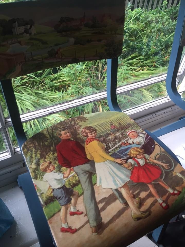 Also on show are decoupaged chairs from Fern Adams, I really liked them, and a selection of illustrated prints and original paintings from Evie May Adams. This is an excellent opportunity to buy direct from the artists and find out about their inspirations for the work, before Richard and Evie's next combined show at Hybrid Gallery in Honiton, Devon at the end of September.