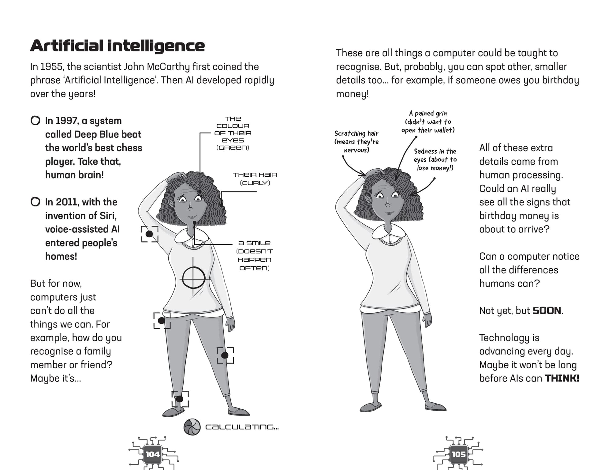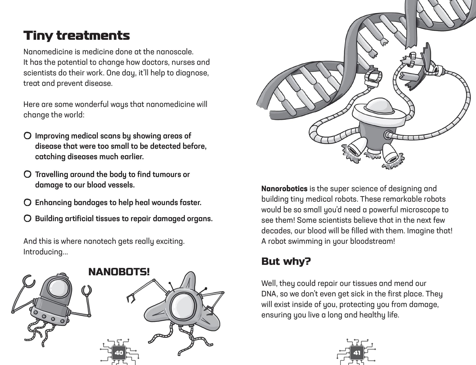 To keep readers engaged, throughout the book there are quizzes, and each chapter ends with a Creation Station or Imagination Station inviting them to make, draw or write something such as drawing a cyborg or writing to a person in the future.