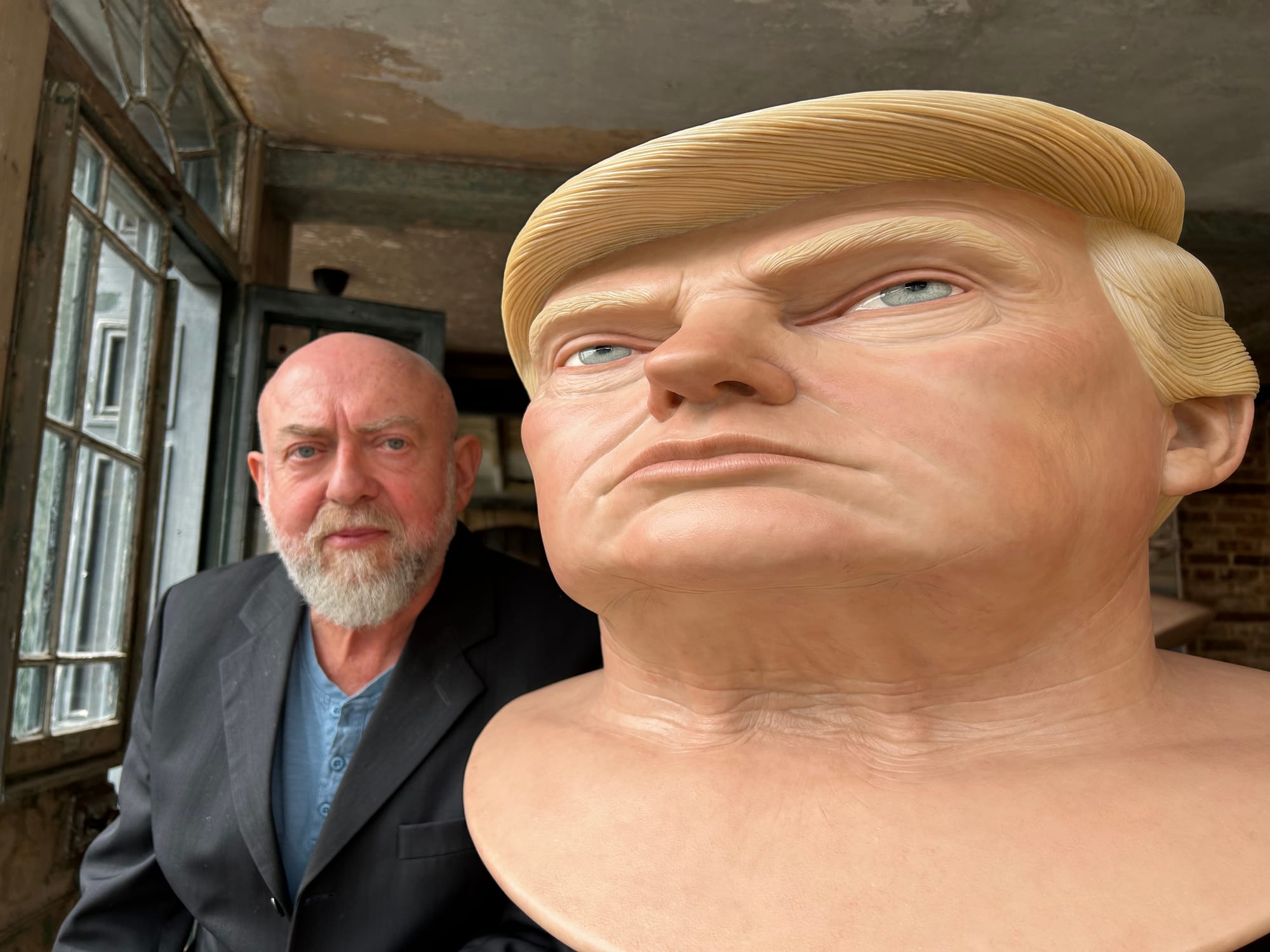 It’s an eye-catching piece of work made from silicon and fibre glass by John Humphreys who has a studio at Normans Bay near Bexhill. His work has appeared in “Charlie and the Chocolate Factory” and “Dr Who.” He also created the Alien in “Alien Autopsy” and Max Headroom. He says reaction to his sculpture of Trump has been fascinating. “People find it a bit surreal, shocking even. It’s a distorted view in three dimensions that confuses. You think you know what he looks like and then you’re confronted by a different view”.