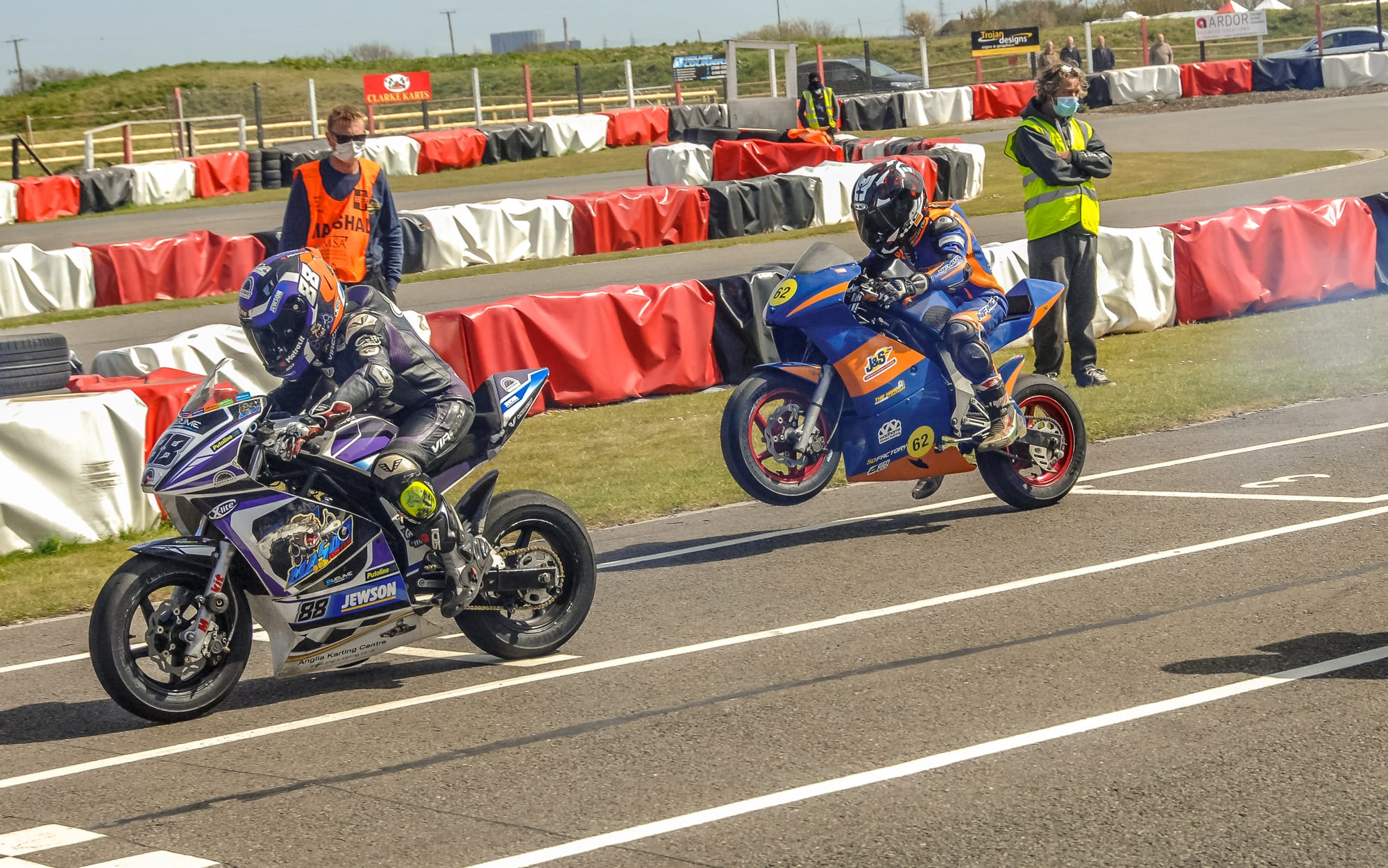 High octane action returned to Lydd Circuit last weekend when instead of karts, the FAB-Racing Mini GP national motor-cycle championship kicked off their 2021 season.