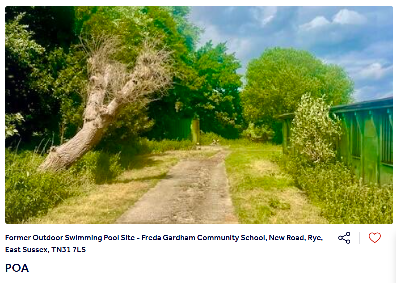 Adverts for the site next to the former Freda Gardham School went live at the end of May. Hastings-based The Land Agency says the former swimming pool and adjoining land is 5,632 sqm and is a "prime development opportunity (with) significant potential for residential or mixed use development."