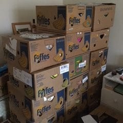 St Mary’s Knitting Group has so far amassed 48 Dignity Bags seen pictured packed in banana boxes, ready to be dispatched to refugees in Syria, via Samara’s Aid Appeal. Hopefully 12 more will be put together by the time they have to go off to the depot in Worthing on January 25, ready for shipment to the refugee camps.