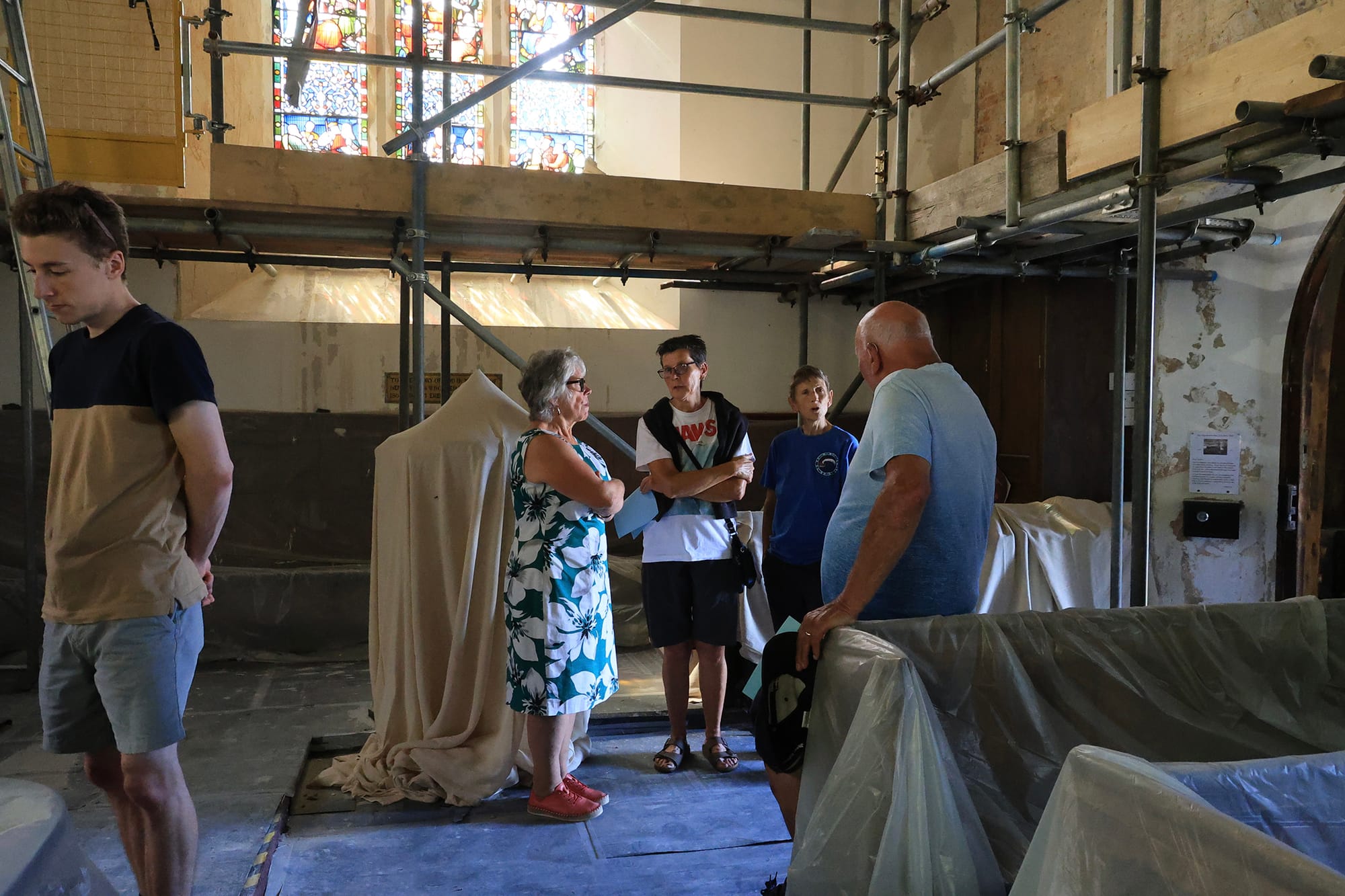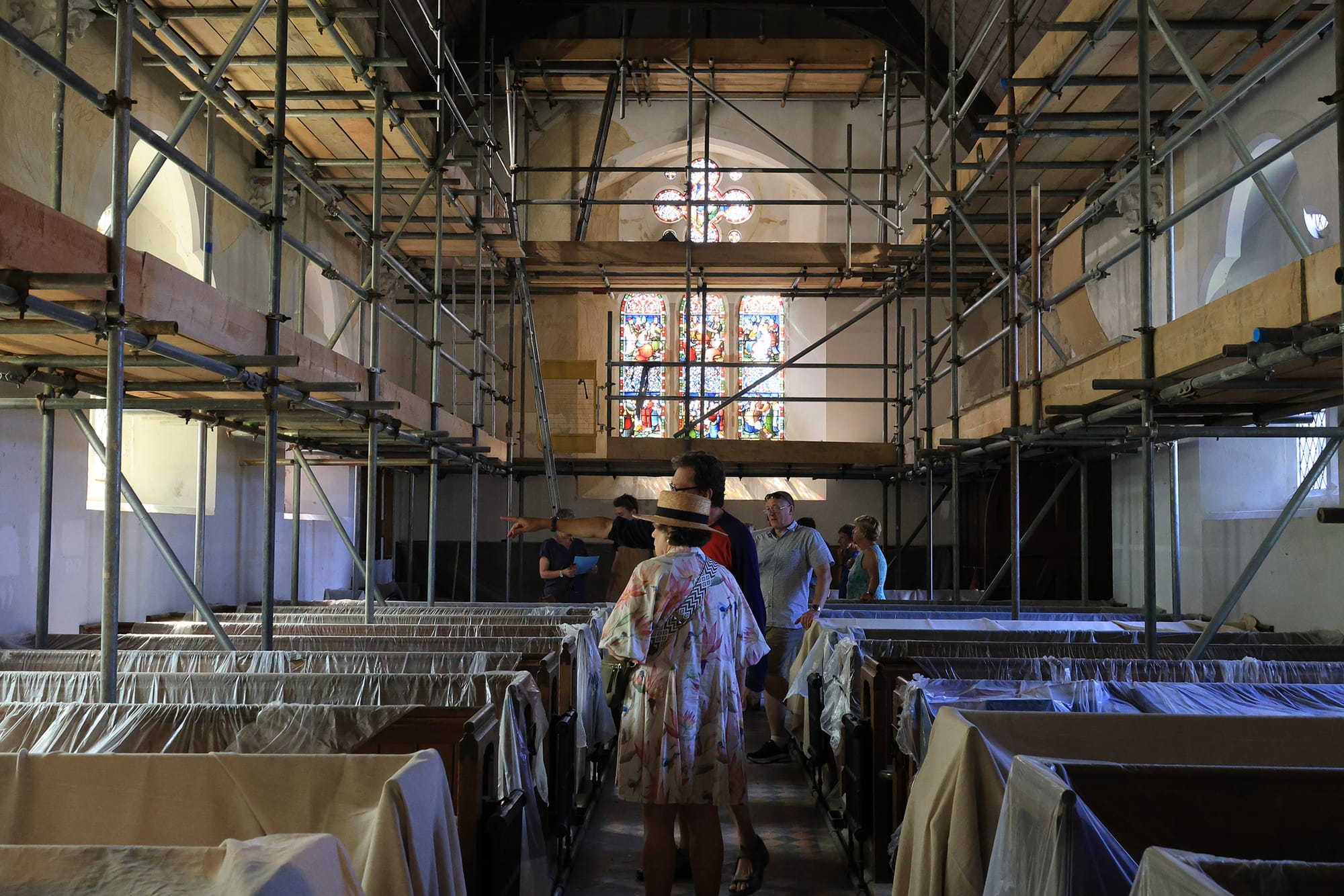 Since May, the builders have removed all the plaster on the west window wall and a large part of the nave. The new plaster must be applied in three stages, with weeks in between to allow each coat to dry out. The walls will then be repainted. Re-pinning repairs around the window have also been carried out. It is also planned to replace the 40-year-old lighting in the nave and chancel with LED lights to be compliant with CofE regulations and to be more environmentally friendly and easier to maintain. This will happen once the painting has been completed.