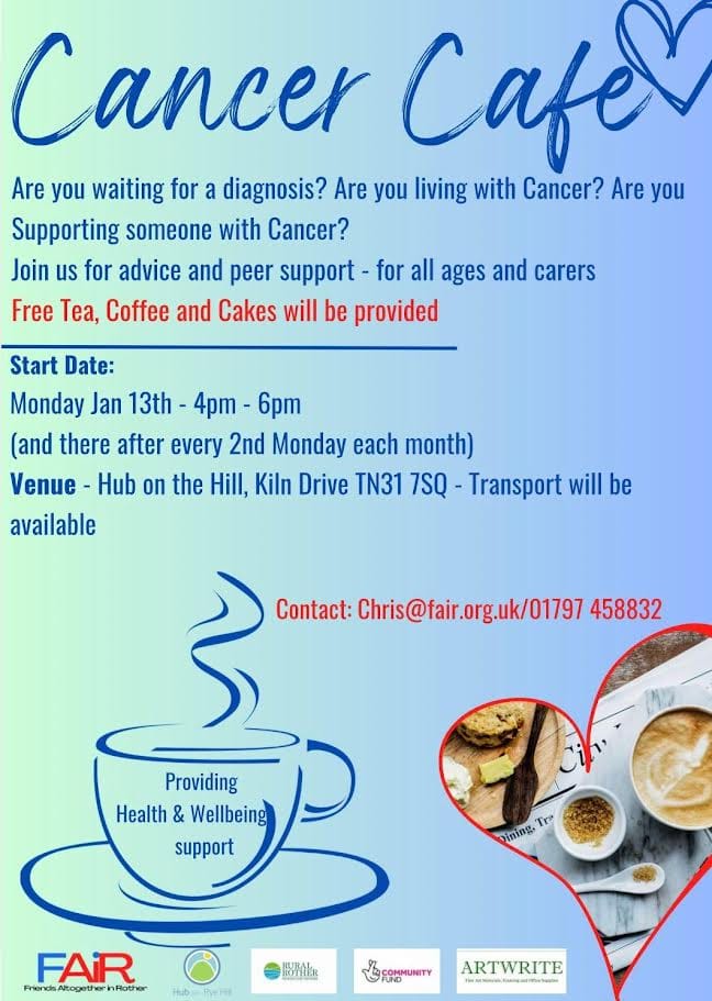 "Everyone's experience of cancer is different. For some, it can be like being hit by an avalanche. In spite of all the help and support that's available, the reality is nobody really has an idea what to expect until it happens to the individual. Which is why Rye and the surrounding communities need a Cancer Cafe to receive advice and peer support."