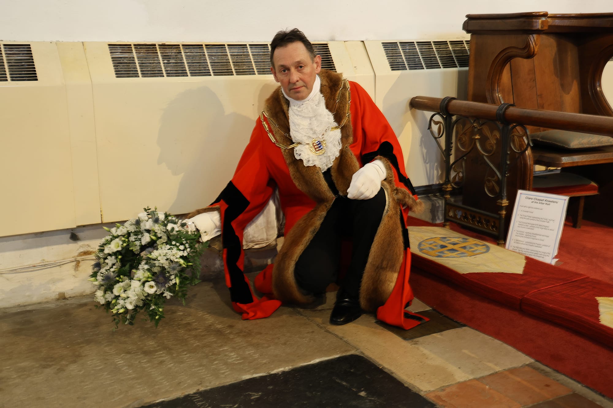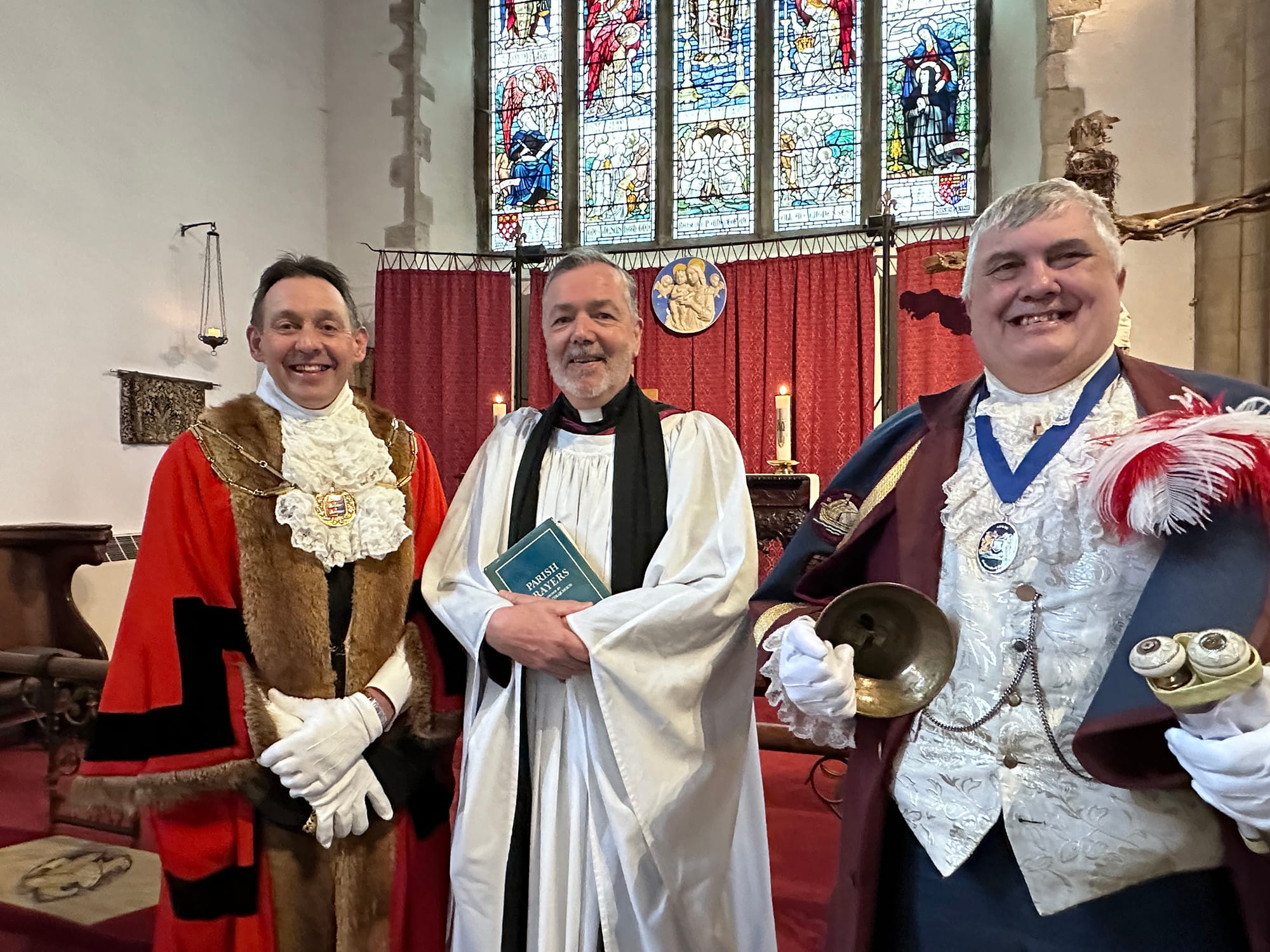 After the drummers drummed, the town crier, Paul Goring gave his cry to over a hundred people who gathered to watch. “Oyez, Oyez, Oyez...” (to hear it all watch the video below). Then solemnly the drummers played the mayor and the town crier up to St Mary’s to be greeted by Rev’d Christopher Breeds who said prayers at the tombstone of Allen Grebell where a wreath was laid by Andi Rivett. A special thank you to Café des Fleurs who supported the event, not only by making the wreath but also contributing to its cost.