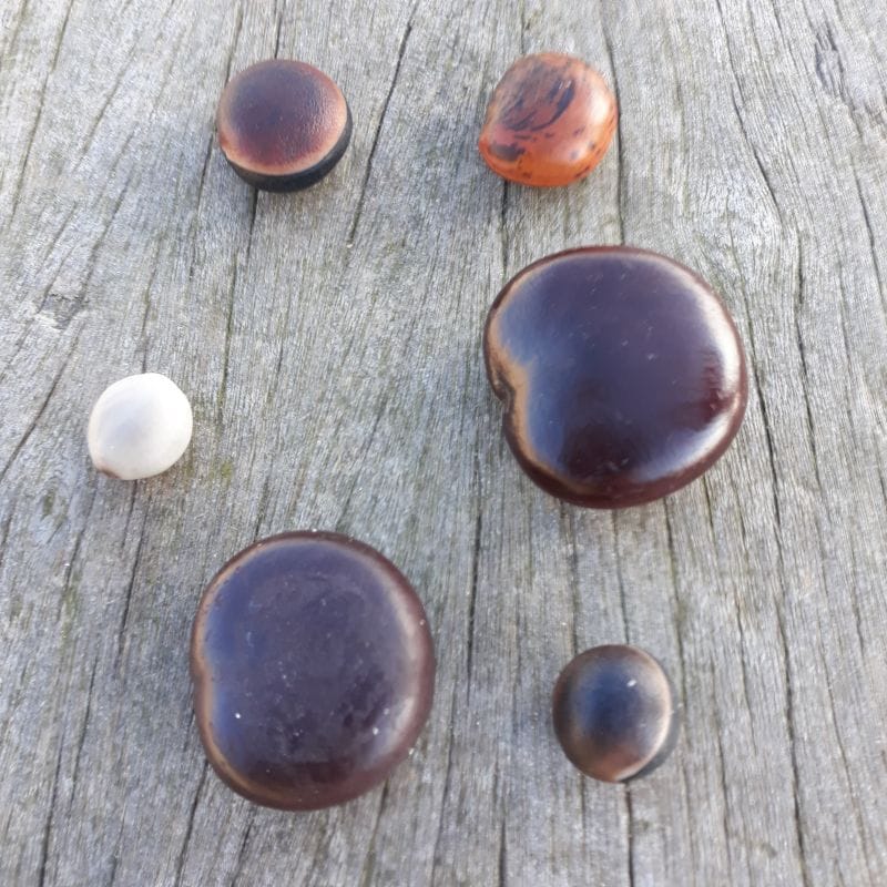 "A sea-bean is either a fruit or seed that has drifted across the ocean," Andy says. "The sea heart, for instance, is the seed pod of the flowering Liana, native to Central and South America. Some of the samples I’ve picked up over the years originated in the Amazon. Some have a tough outer seed coat, impervious to salt water, and an internal air pocket allowing the seeds to stay afloat for more than 30 years in some cases."