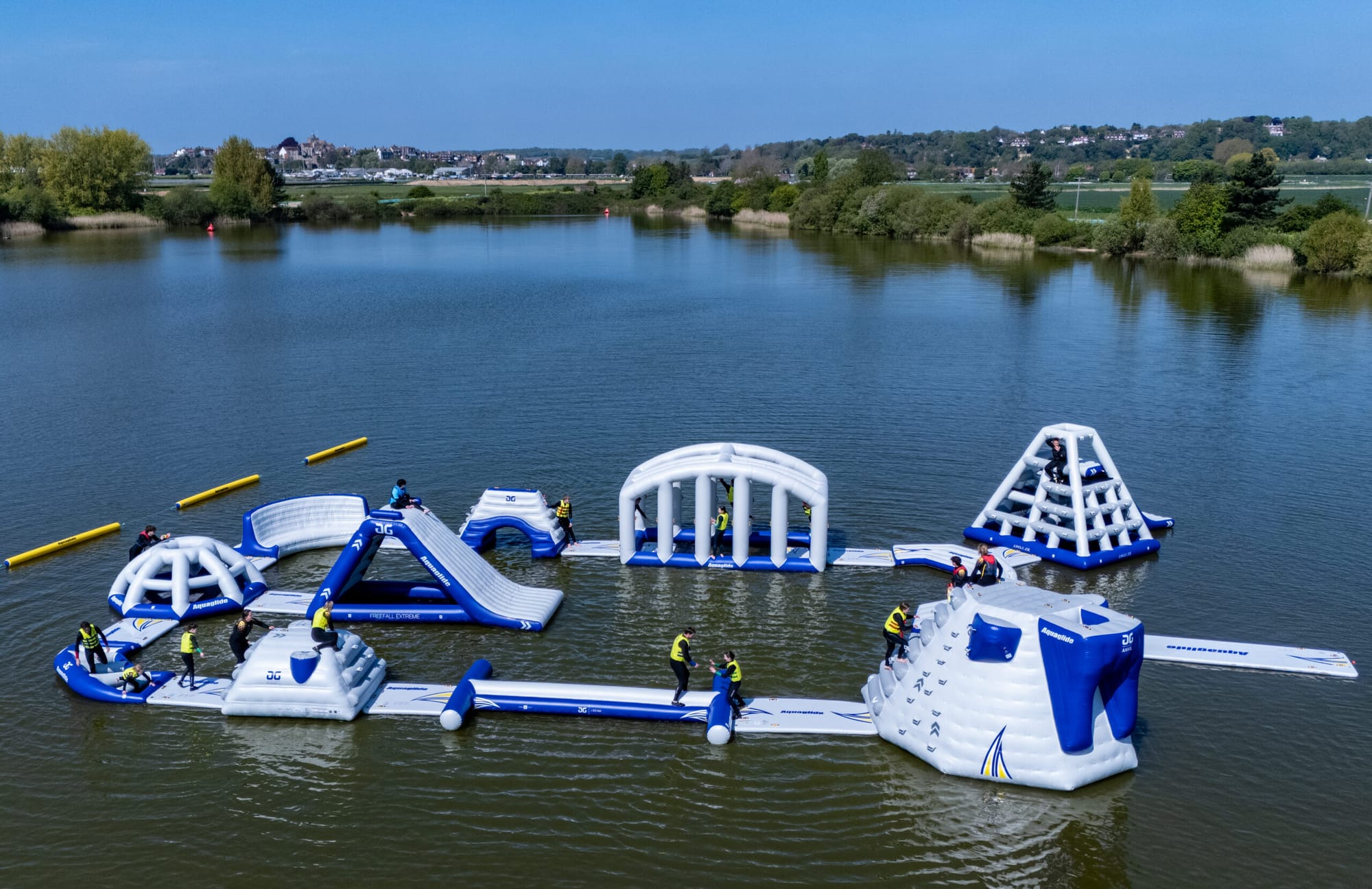 On a gloriously warm and sunny Saturday, May 3 Rye Watersports on Camber Road, launched East Sussex’s only aquapark, a circuit of inflatable structures on the lake, for all the family.