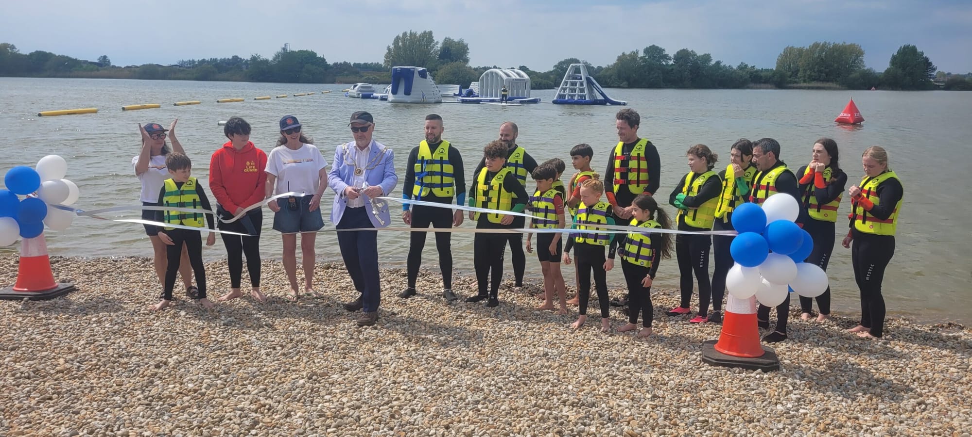 The aquapark was opened by Rye mayor, Andy Stuart, who cut the ribbon before a group of adults and children in wetsuits and buoyancy vests swam out to take part in an hour’s fun on the inflatables.