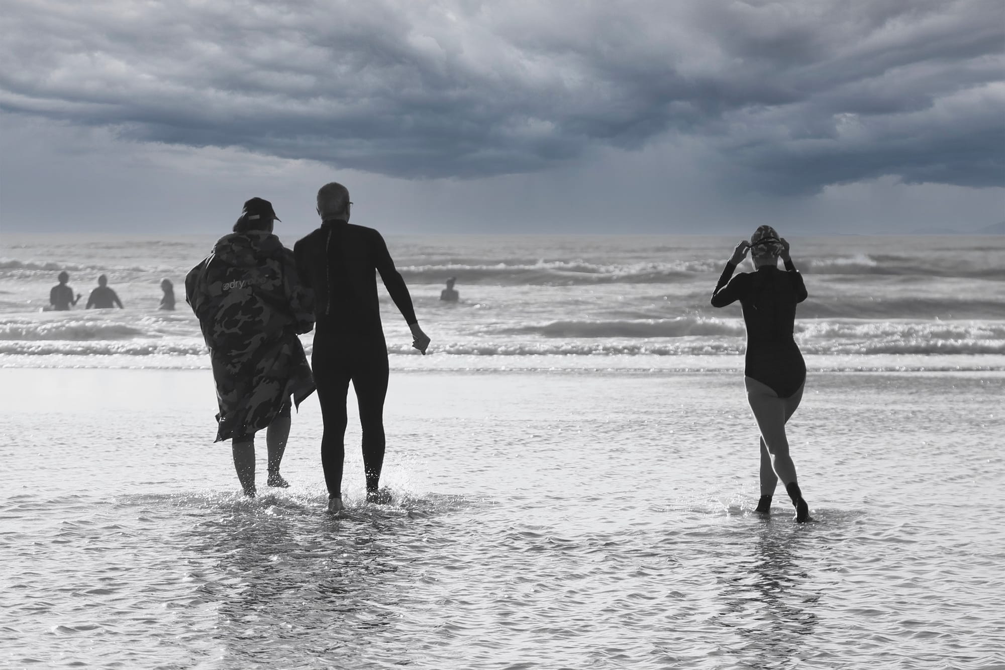 We all love it, we have a laugh, we look out for each other and eat cake and drink hot chocolate. It is very important at Camber to understand what the tides are doing and working together keeps us safe. It is good to have a spotter on dry land looking out for anyone who is getting too cold or into difficulties. We started at Camber nine months ago and we have just over one hundred members now. Membership is quite transient because we have a lot of visitors who come here but are part of the Bluetits family elsewhere. I recently went to Cornwall for a week and joined the Bluetits down there. There is always a group that you can find when travelling and being with a group is the safest way. We all love it.’