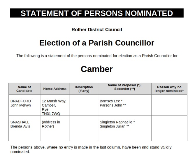 There’s a by-election in Camber next week. Villagers go to the polls on Thursday, August 24 to fill a vacant seat on the parish council.