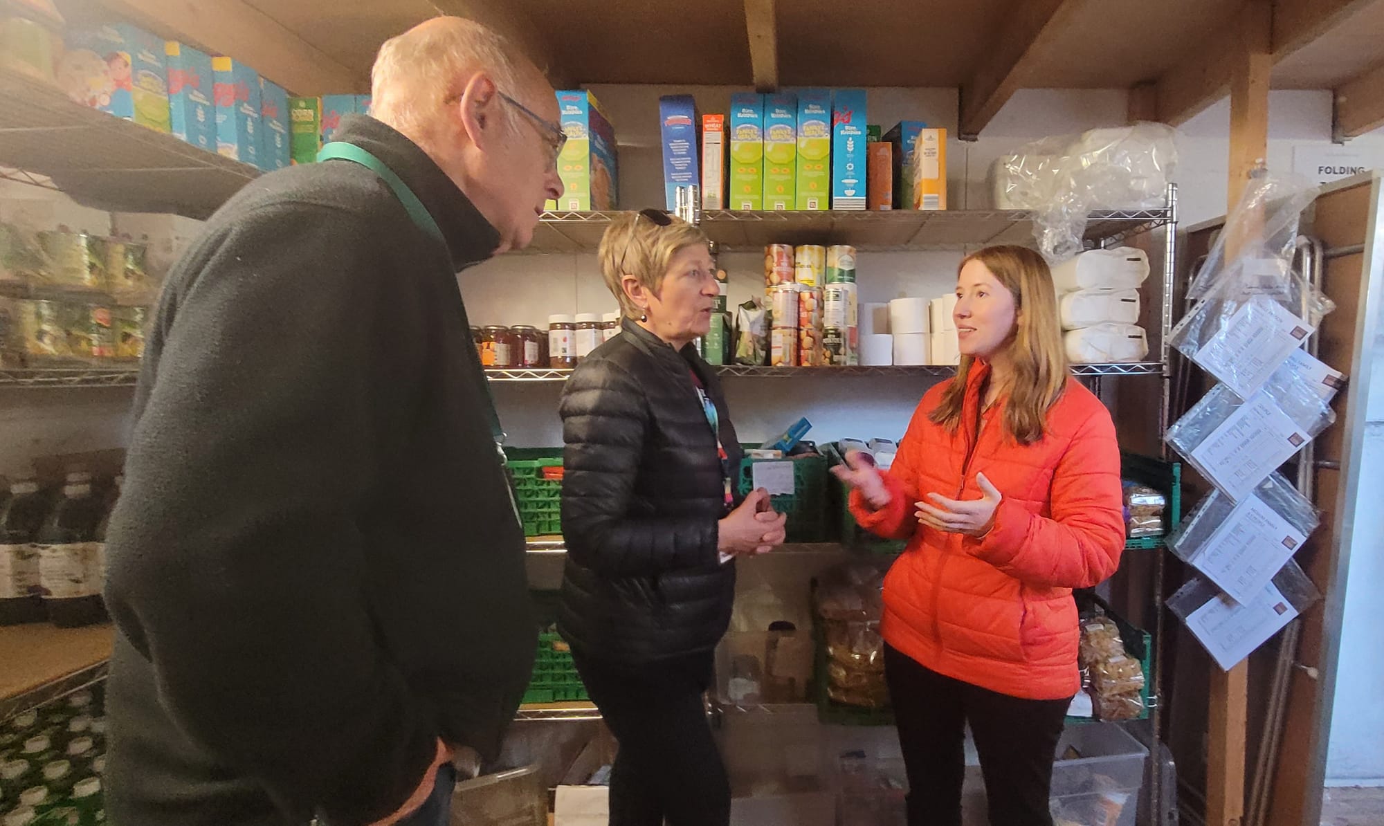 Local MP, Helena Dollimore, visited Rye Foodbank on Wednesday, April 9 to meet volunteers and to talk to former and present managers, Bob Harper and Penny Downes about the work that the food bank does to support the community.
