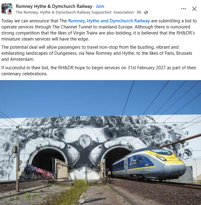 Finally this week, hats off to the Romney Hythe and Dymchurch Railway for this April fool story.