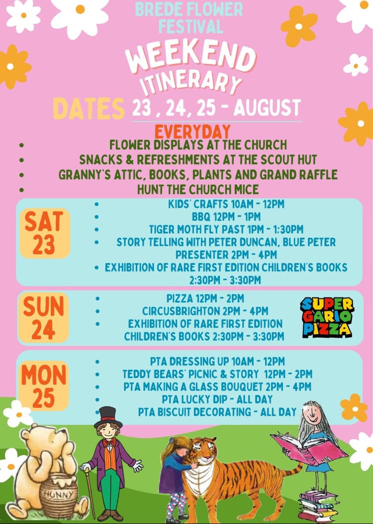 Also this weekend it's the Brede Flower Festival, the Pett Independent Rescue Boat Open Day, the Jempson's Boot Fair at Peasmarsh, and the Beckley church fete.