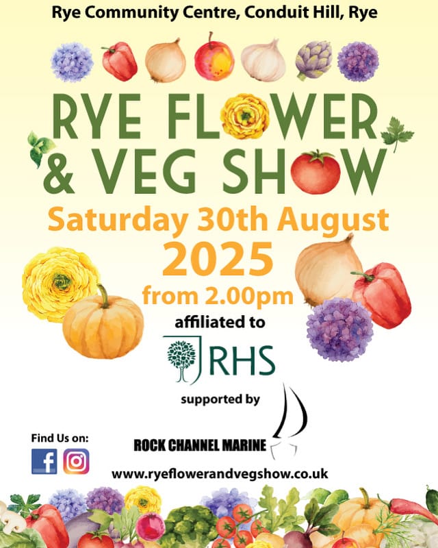 A final reminder to entrants and visitors that the Rye Flower and Veg Show is on this Saturday, August 30 at the Rye Community Centre. It’s 2pm for a look at the entries.