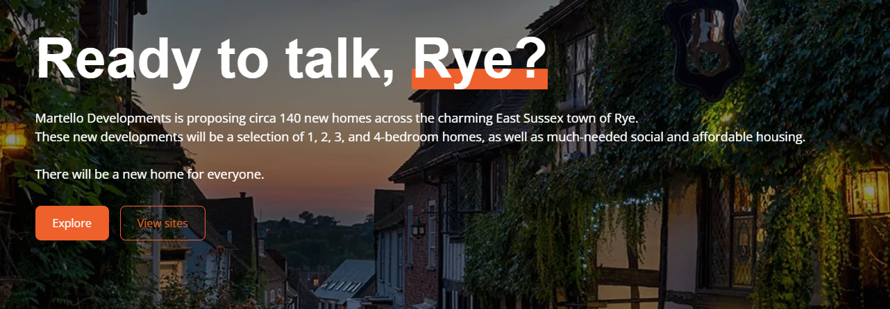 A website has been launched giving more information about Martello Developments plans for housing in Rye. As we revealed exclusively in December, 140 new homes could be built at Tilling Green, Rock Channel, the former Freda Gardham School, and on Rye Harbour Road.
