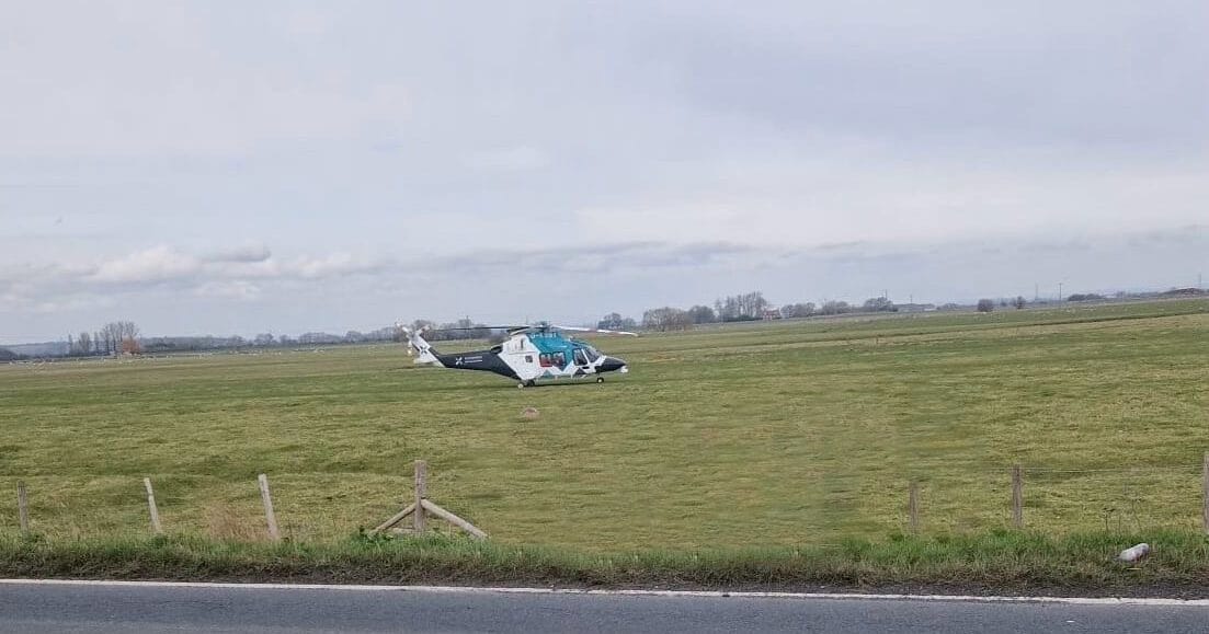 The air ambulance landed near the Camber road at the weekend after a car ended up in a ditch. A helicopter from Air Ambulance Charity Kent Surrey Sussex arrived at the scene at 1pm on Saturday, March 9. The crew worked with emergency workers from Sussex Police and SECAmb to treat the patient at the scene, before they were transported to a major trauma centre by air.